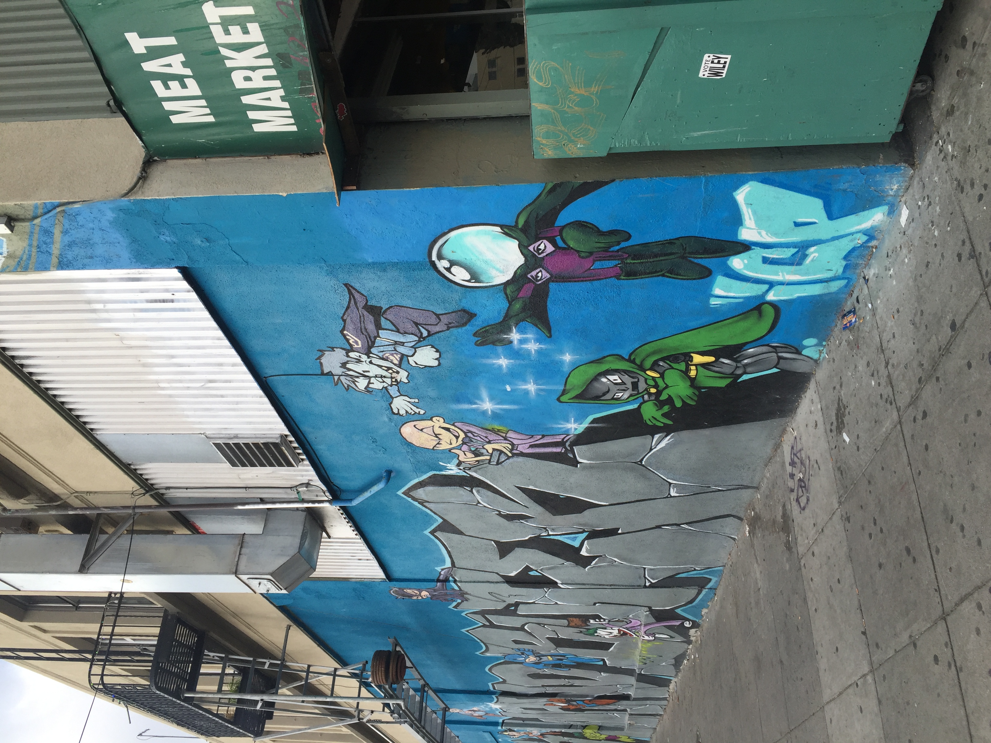 Always catching glimpses of amazing graffiti, although some graffiti is just random words from people who party too much when the giants win world series or when they drink too much. Their actions sometimes causes murals to be repainted or taken off sine they're considered damaged