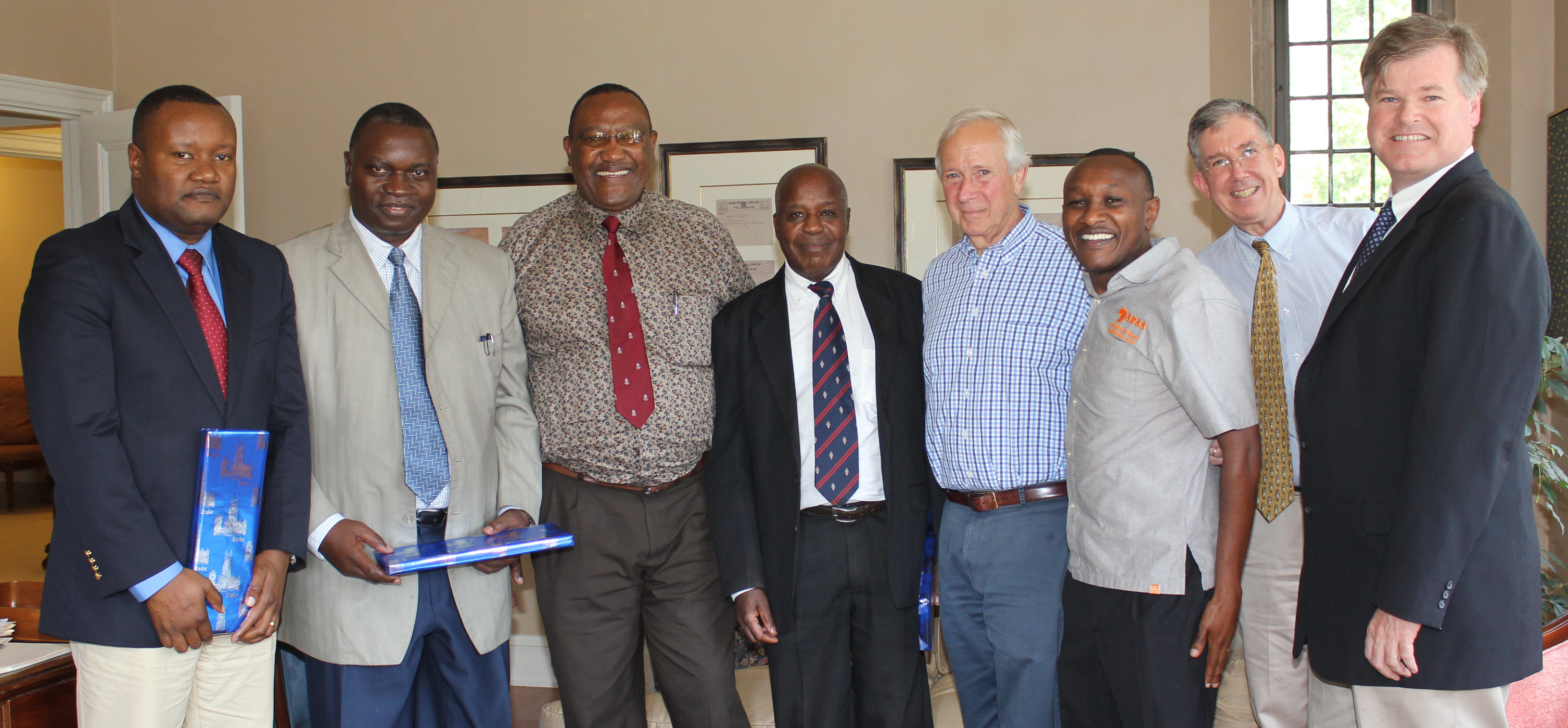 John Bartlett, Paschalis Rugarabamu and Ahaz Kulanga share a laugh during a recent meeting with Duke University president Richard Brodhead in Durham, North Carolina.