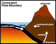 convergent plate boundaries form where two plates collide. The denser plate sink below the more buoyant plate collide, the subduction. The area where a denser plate descends into Earth along a convergent plate boundary is called a subduction zone.