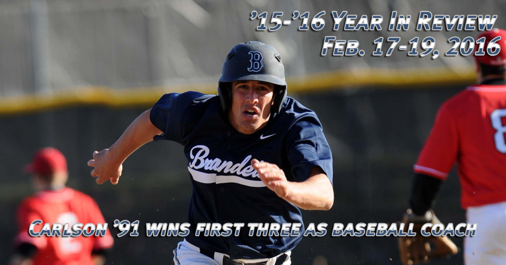 For the first time since the early 1980's, Brandeis baseball had a new coach, as Derek Carlson '91 succeeded Pete Varney after 34 years at the helm. The Judges got off to a terrific start over February break in Florida, taking down St. Joseph's (Brooklyn) three straight games. The first two were dramatic 4-3 finishes, as Brandeis scored three times in the top of the ninth in game one and overcome an early deficit to win in 11 innings in game two. Brandeis rolled to an 8-2 win to complete the sweep for their first 3-0 start since 2008. Grad student Rob Trenk went 7-12 with five RBI - including three in game two - to pace the Judge hitters, while Sam Miller allowed just one hitter over the minimum in his start in game 3.