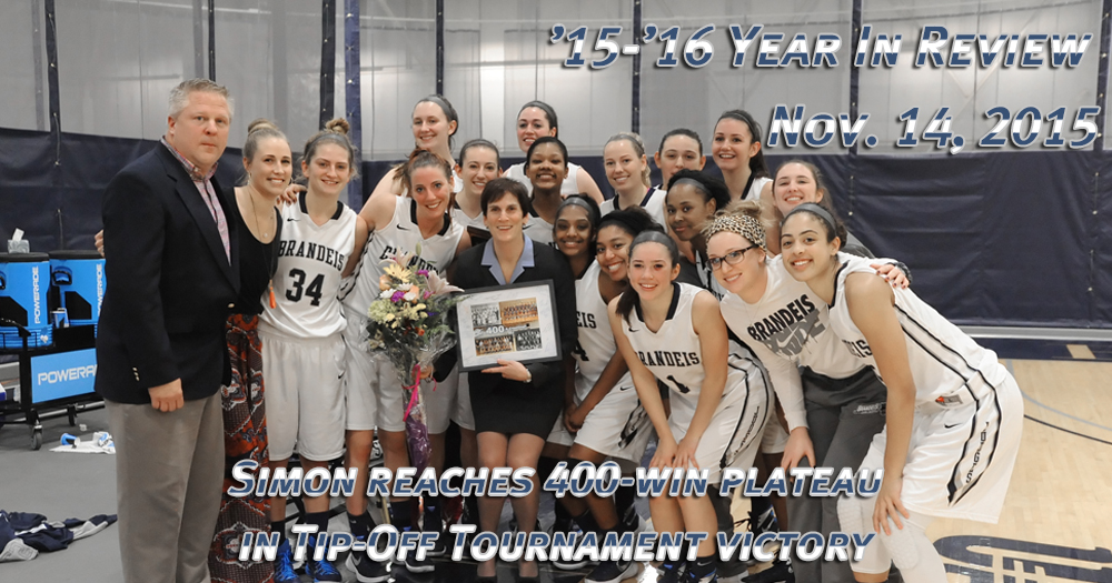 Brandeis women's basketball coach Carol Simon entered the year two wins shy of 400 for her career. The Judges dismantled Mount Holyoke, 81-38, in their season opener, then claimed the Brandeis Tip-Off Tournament presented by the Park Lodge Hotel Group with a 70-54 win over Eastern Nazarene. Senior Niki Laskaris had 17 points in the title game, helping Simon become the 31st active coach in Division III women's basketball to reach the 400-win plateau.