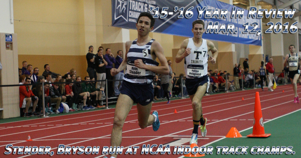 Sophomore Ryan Stender got off to a tremendous start for men's cross country, but missed championship season to injury. He rallied and came back strong during indoor track and field, winning the 3,000-meters at UAAs with an amazing kick. He then improved his lifetime best in the event by 10 seconds at a Tufts Last-Chance meet to earn his first-ever trip to the NCAA Championships. Emily Bryson made it back to nationals after her All-America cross country season as the 16th seed in the mile run. Both competitors finished in 12th place at the national championships at Grinnell College in Iowa, a shade out of All-America status.