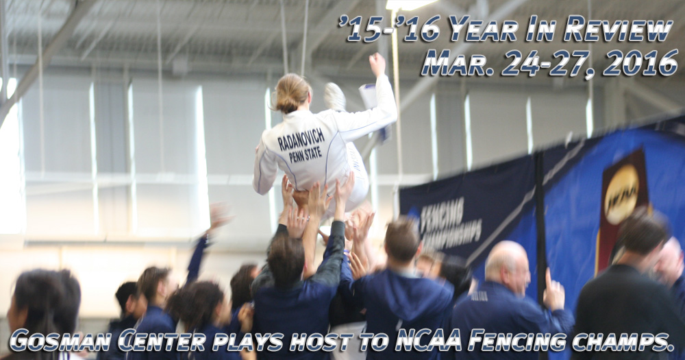 While the Judges weren't fortunate to qualify any student-athletes, the Gosman Center was host to an amazing four days of fencing at the 2016 NCAA National College Fencing Championships. Columbia University took home the crown for the second year in a row, while Harvard's Adrienne Jarocki and Westwood, Mass., native Andrew Mackiewicz, of Penn State earned the sabre title in front of their hometown crowds.