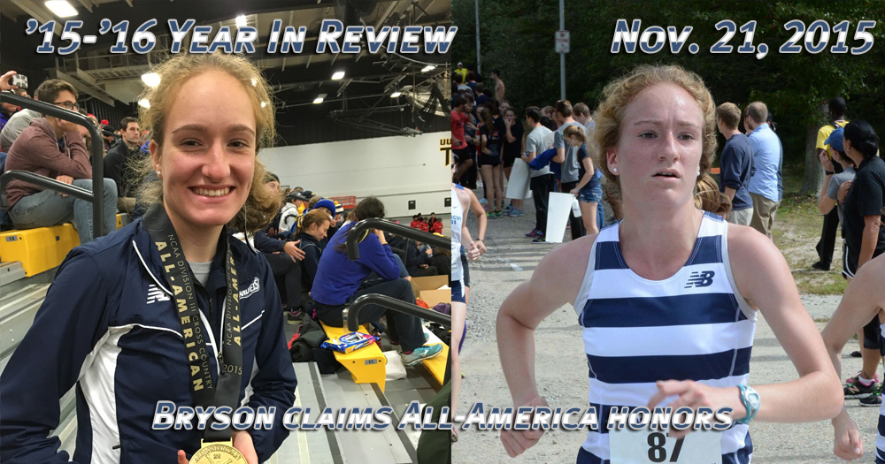 After finishing 13th overall at the New England regional, Emily Bryson became the first Brandeis female rookie to qualify for the NCAA Championships in cross country. Bryson went to Wisconsin and finished the six-kilometer course in 21:44.50, her best time of the season for a 6K race by six seconds. Running back in the pack through the first kilometer, Bryson moved up nicely by the second, moving into 36th place. She was a strong 16:29 just under the five-kilometer mark and finished in a large pack about 32 seconds behind the leader. By placing 31st, Bryson became only the third Brandeis freshman – in any sport – since 2000 to win All-America honors.