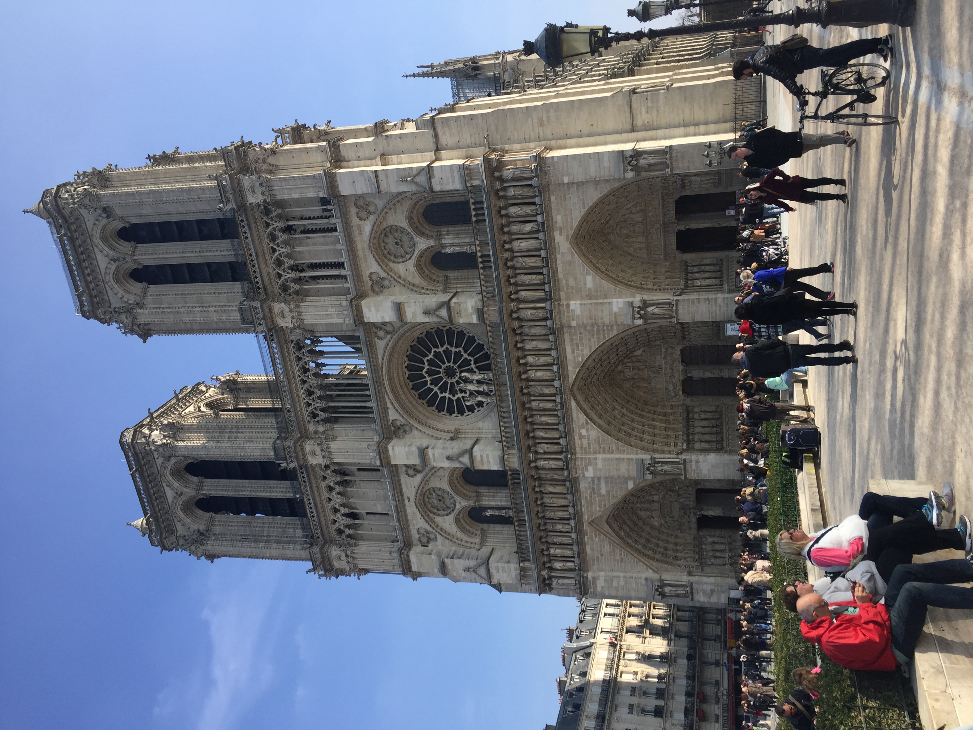 Oh, we're outside Notre Dame, some famous cathedral or other. It's on an island in the middle of the Seine. I've been to Paris several times before but honestly I'm not sure if I've been here. That's not to say I haven't, but I don't remember it. It's lovely, the sun is out and the place looks great. Teeming with people, obviously, but still lovely.