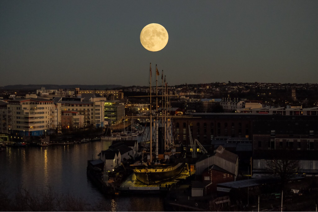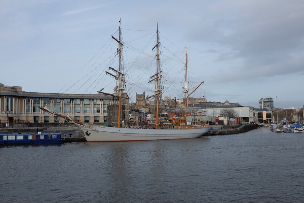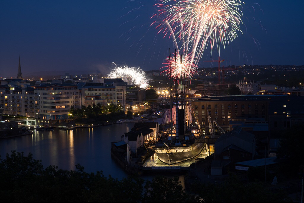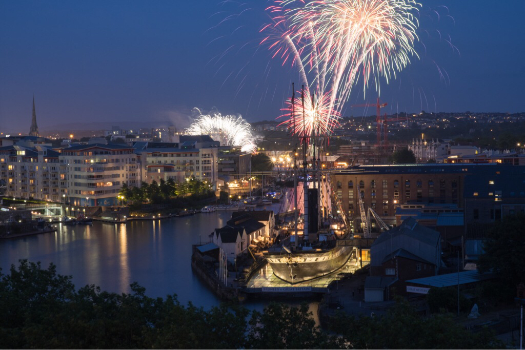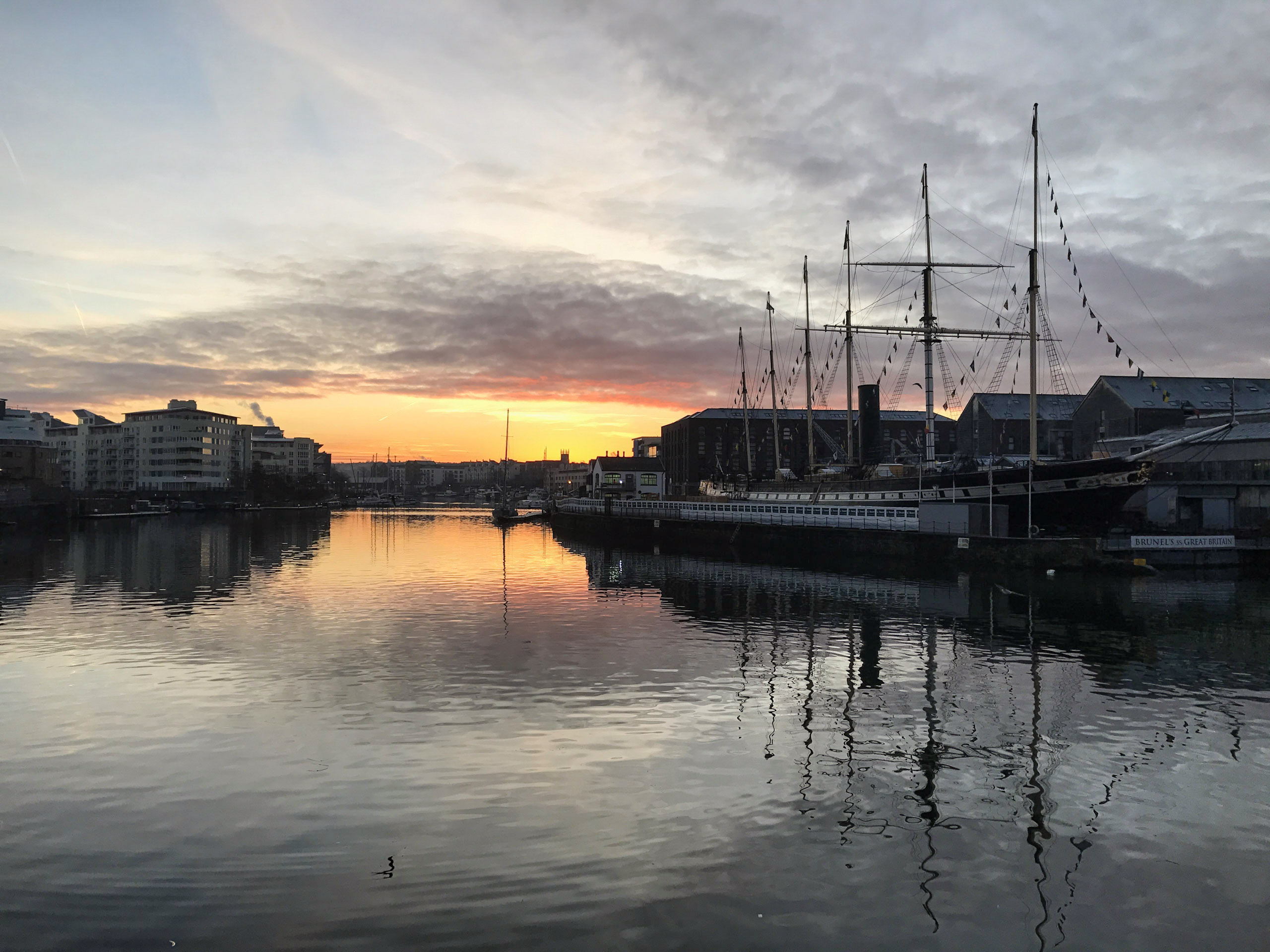 In the foreground is the SS Great Britain, Brunels famous ship. Bristol is home to many of his historic achievements including the Clifton Suspension Bridge and the Great Western Railway.