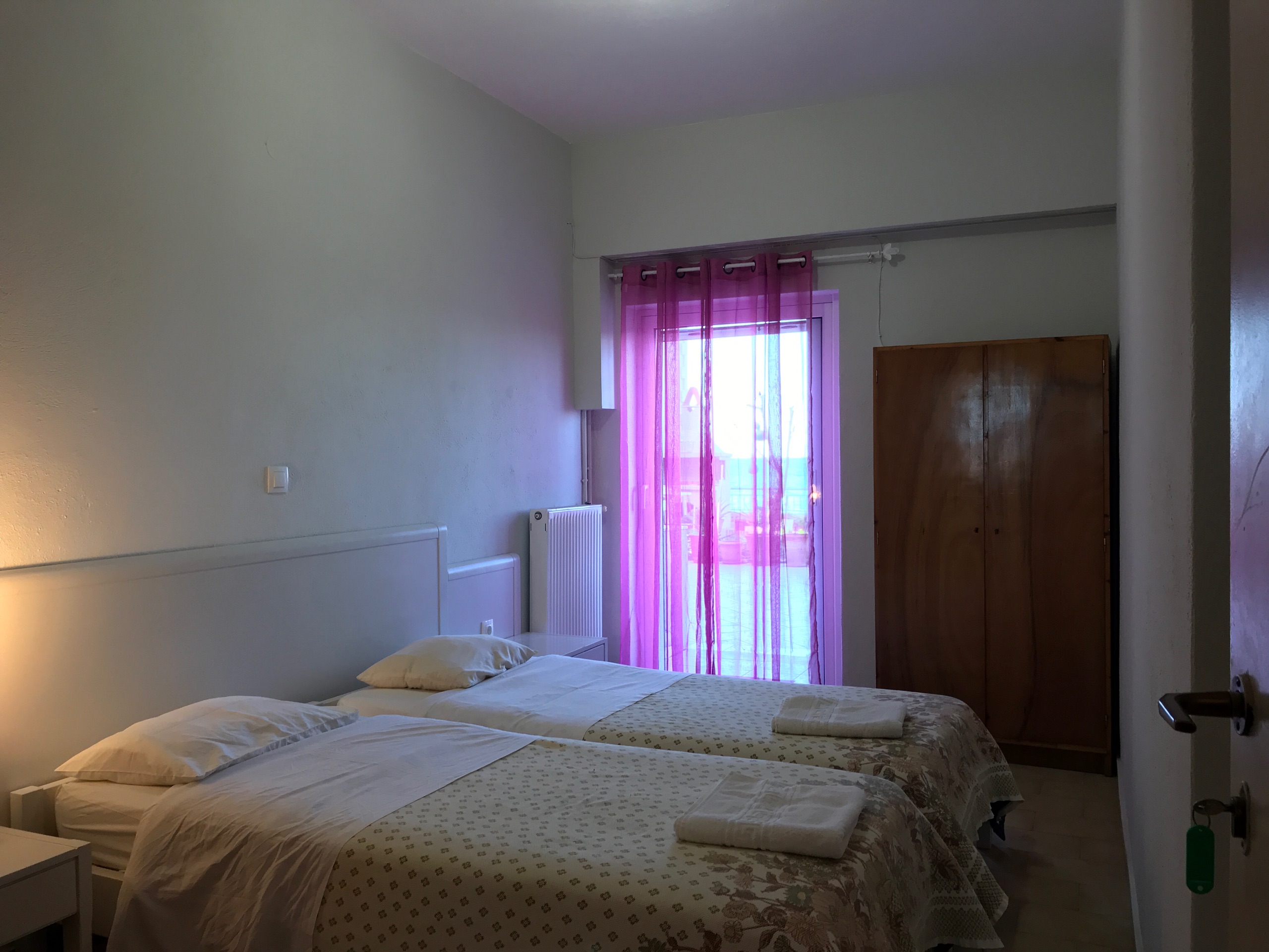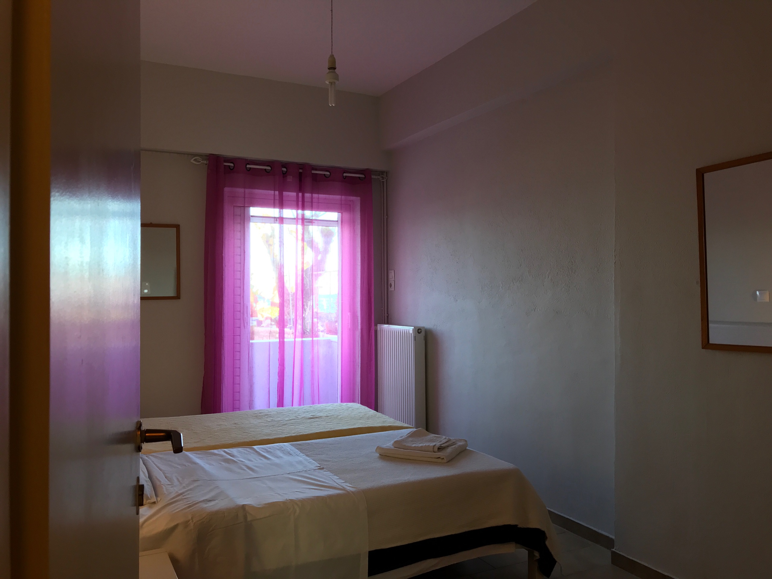 Regular Checkin is after 4pm, Regular Checkout is at 1pm, however we are flexible on this and if possible we plan things differently. However please make sure you contact us soon enough, about a week earlier if possible, to schedule your checkin time. Please download our checkin guide PDF file, in order to have it offline when trying to find your way to Mamangakis Apartments.