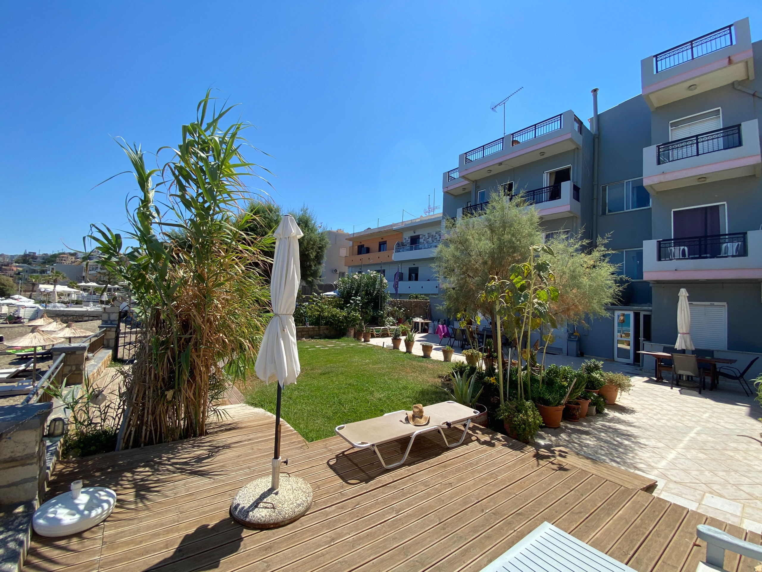A seafront apartment, clean, quiet and private, immediate access to the garden, street side backdoor, 1 double and 2 single beds, large kitchen, ac, tv, wc, high speed wifi (VDSL), laptop friendly workspace, direct access to the beach and a pleasant 20-25min walk from city centre.