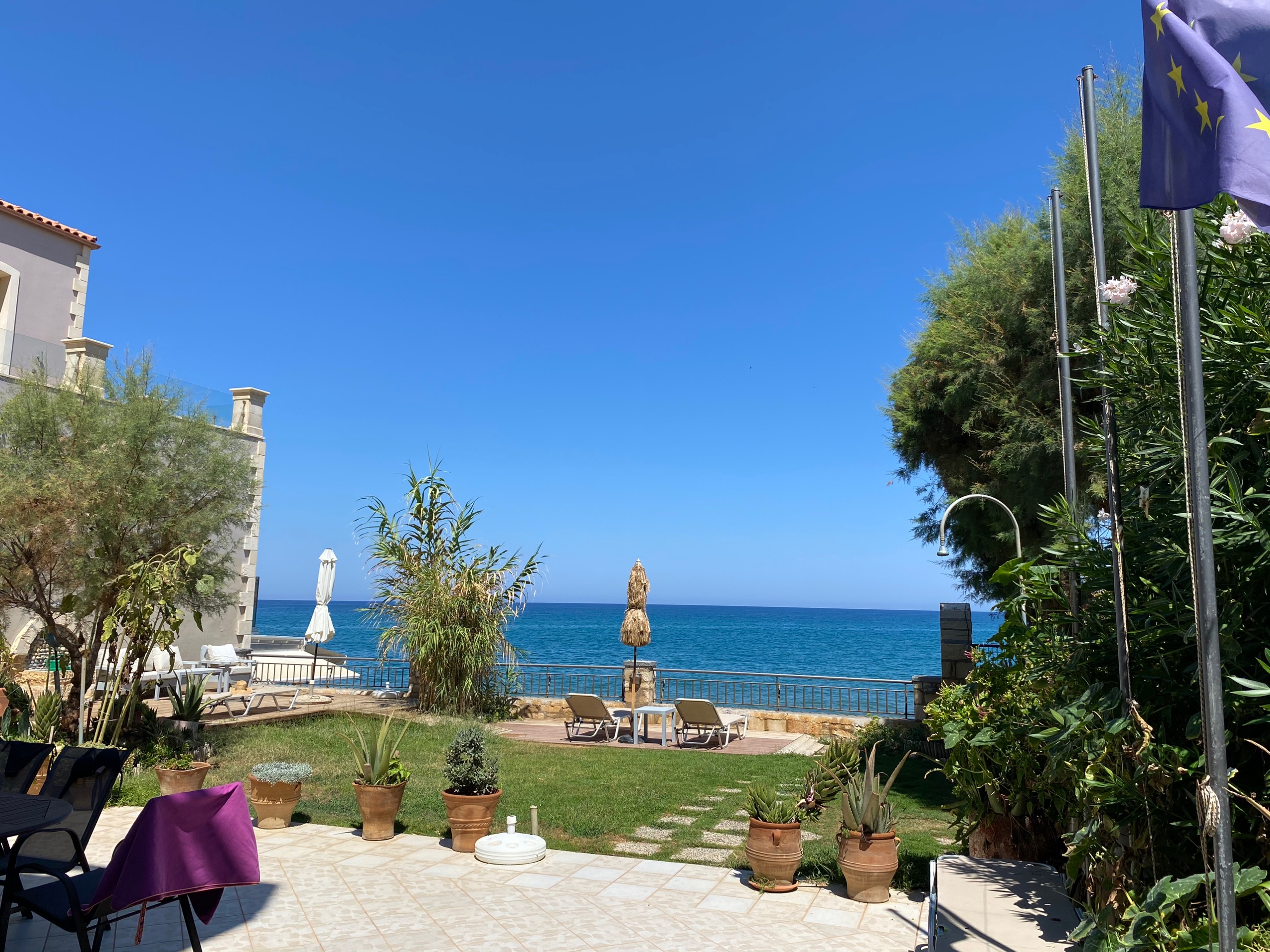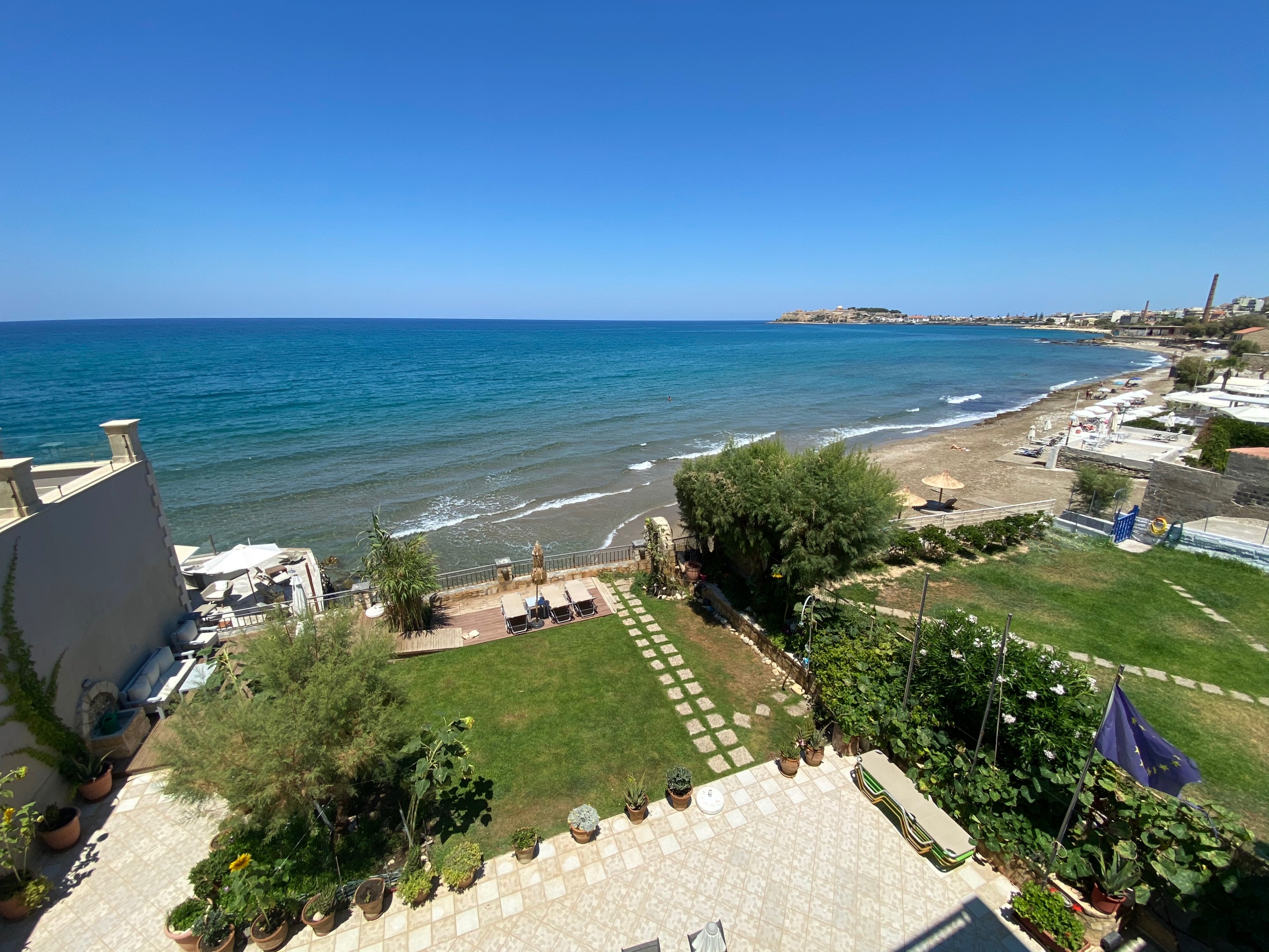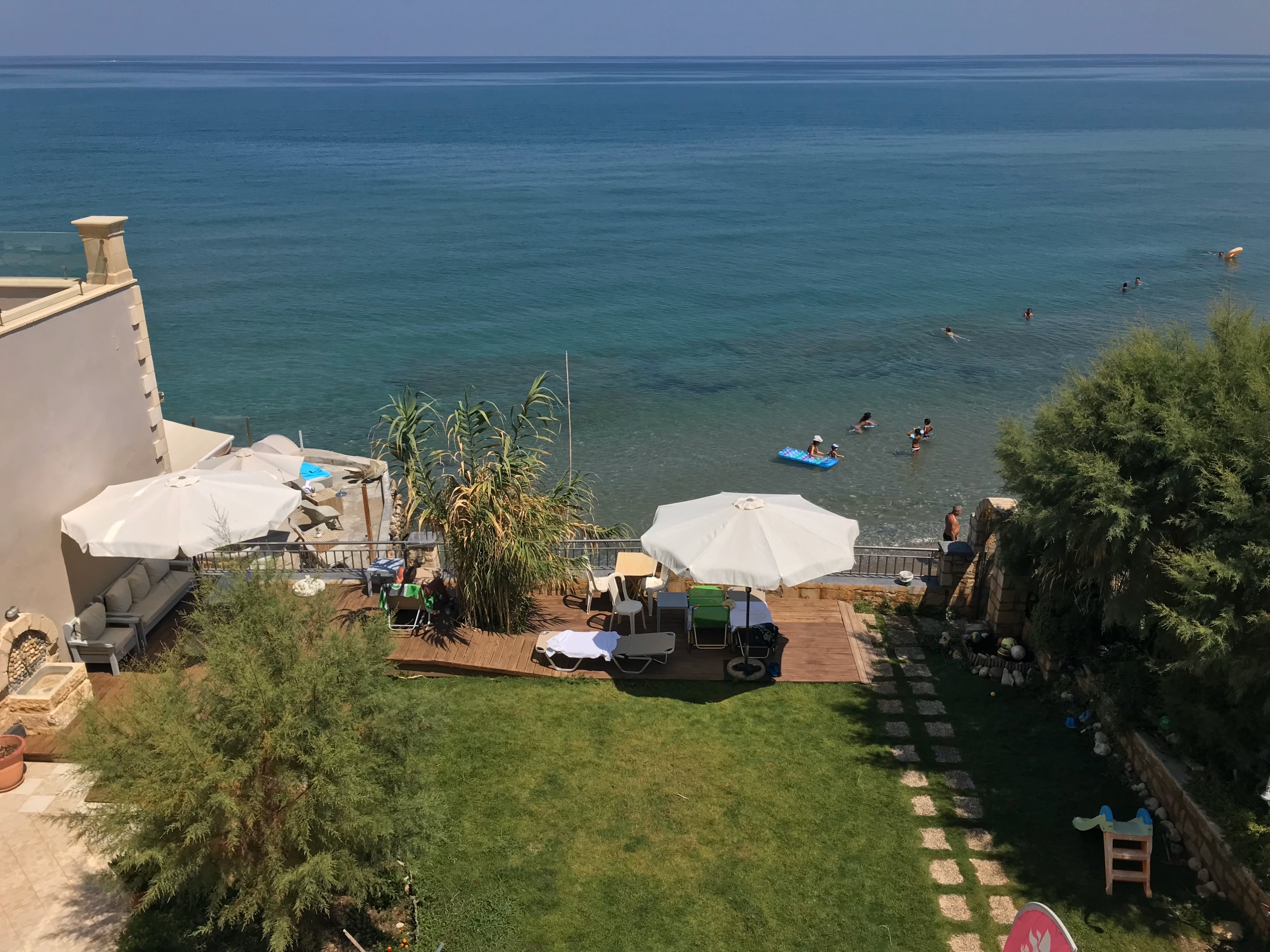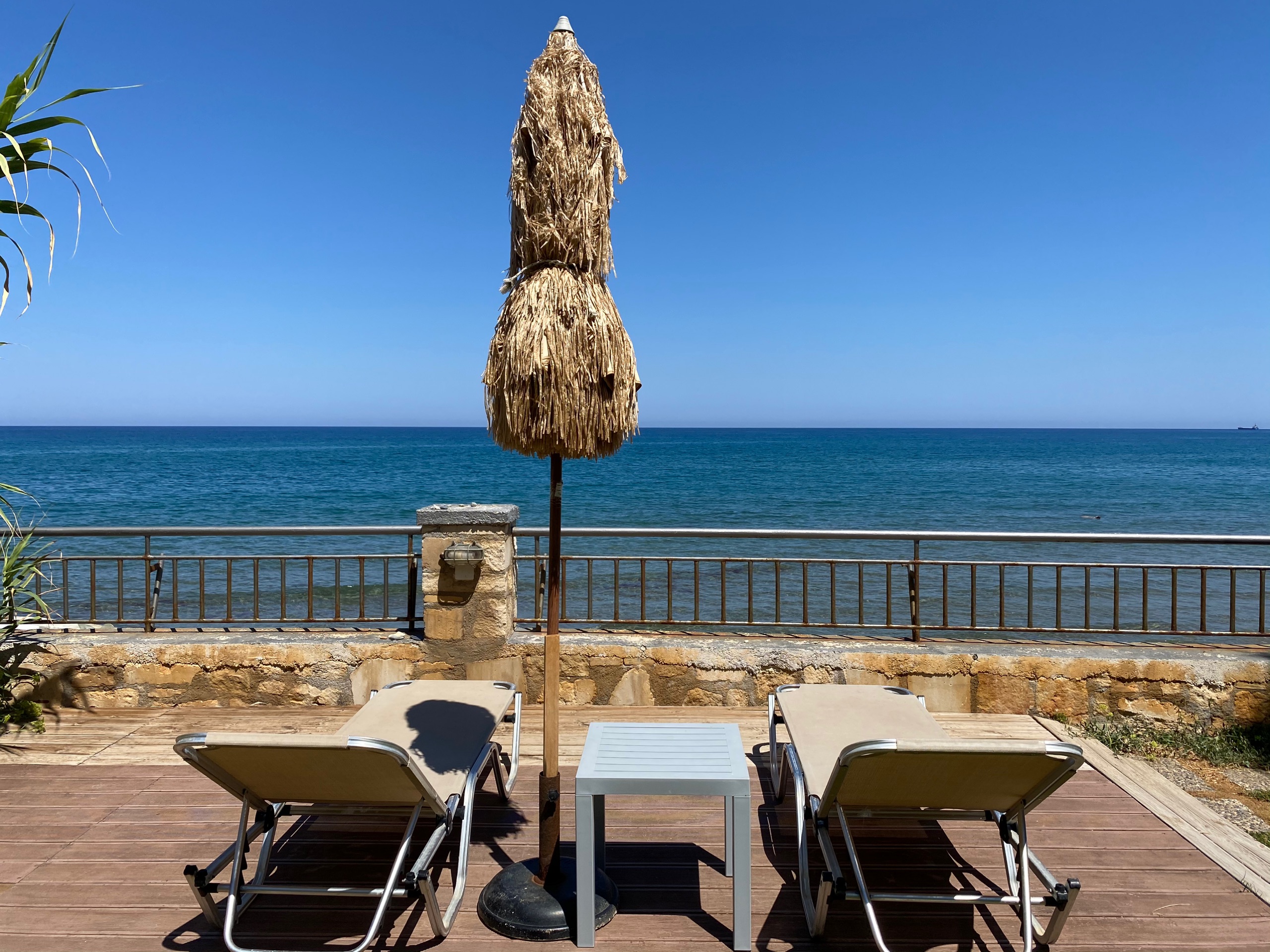 A seafront apartment, clean, quiet and private, with jaw dropping sea view, balcony, 2 single beds, small kitchen, ac, wc, high speed wifi (VDSL), laptop friendly workspace, immediate access to sea and a pleasant 20-25min walk from city centre.
