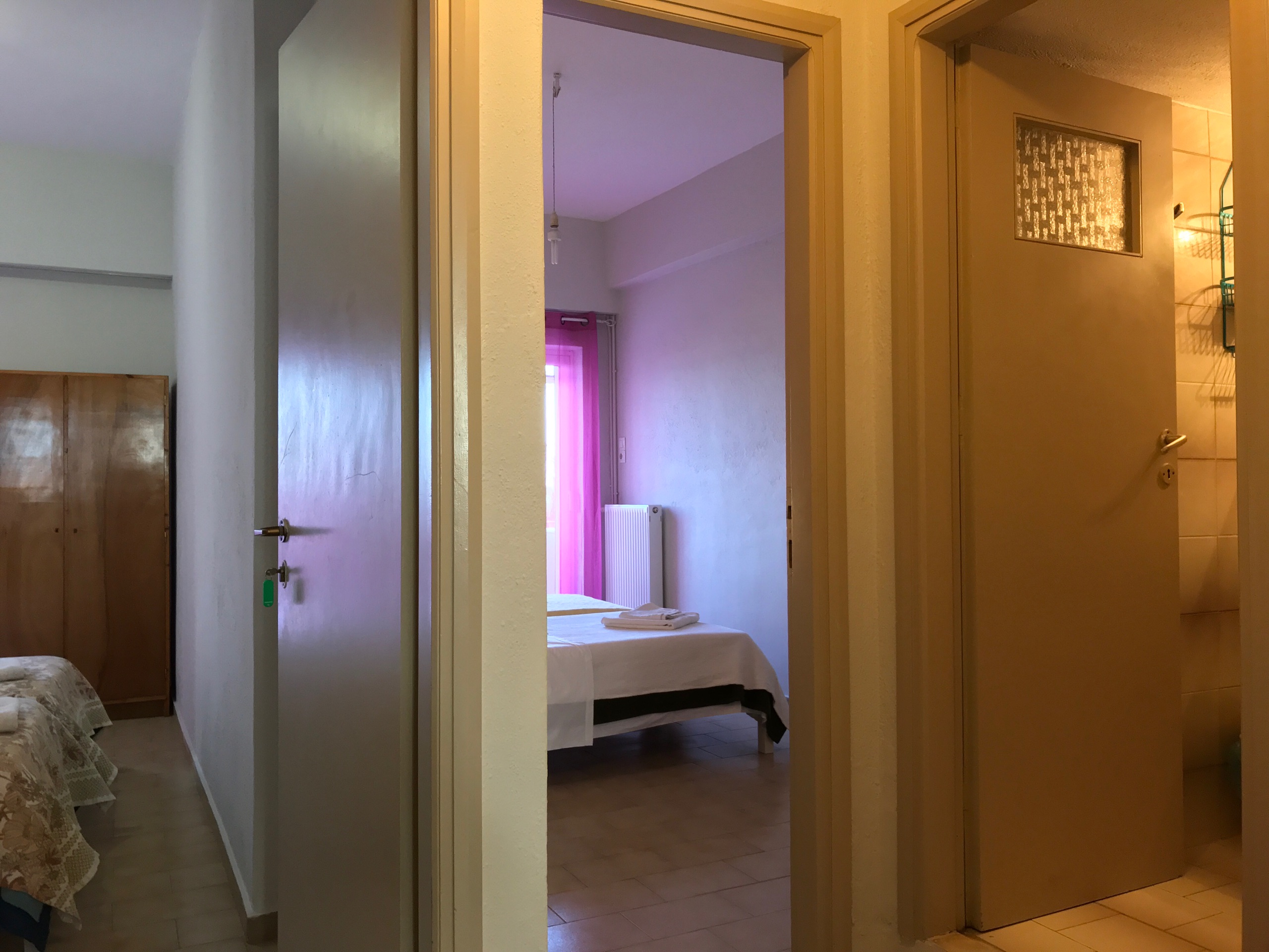 Clothes iron, hairdryer and baby cot are also available upon request. WC has a shower with soap dispenser and shampoo dispenser. Apt4’s WC is equipped with an electric water boiler for shower hot water. Of course, pillows, bedsheets and blankets are provided are prepared in the room.