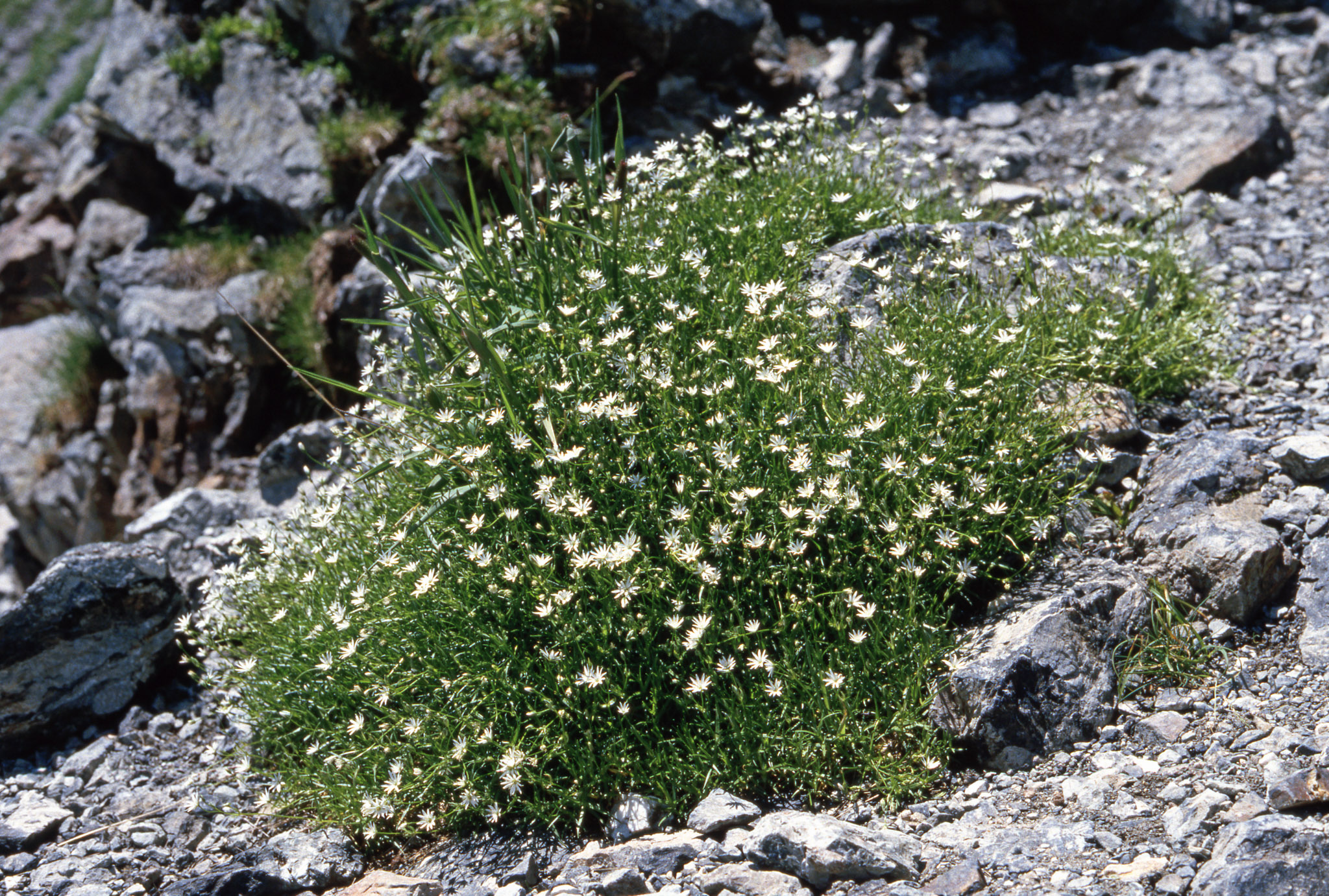 タカネツメクサはツメクサ類のなかでもがっしりとした感じを受ける。こんもりとした塊状になっていることが多い。
