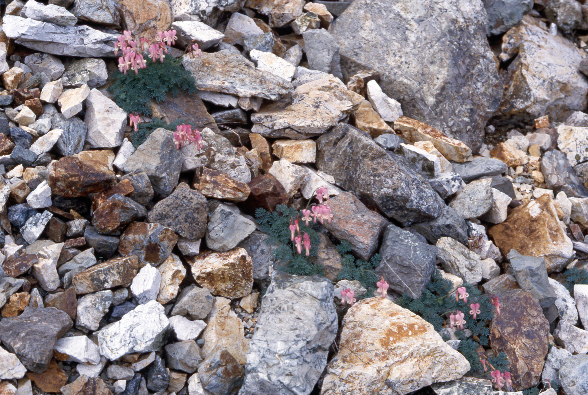 高山植物の女王とも呼ばれるコマクサ。これほど岩だらけの場所で生育できるのはコマクサくらいしかない。