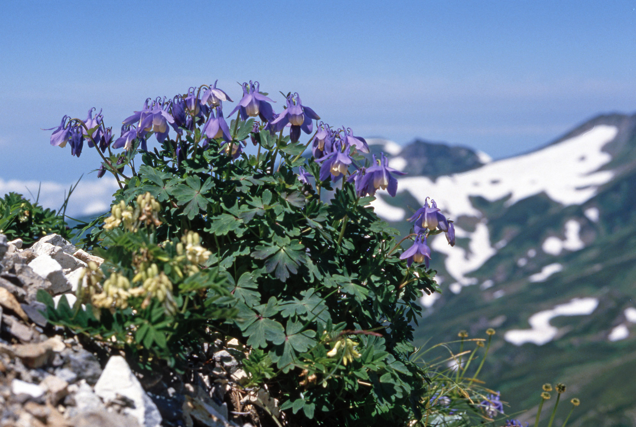 立派な株のミヤマオダマキ。鑓ガ岳の中腹にて。