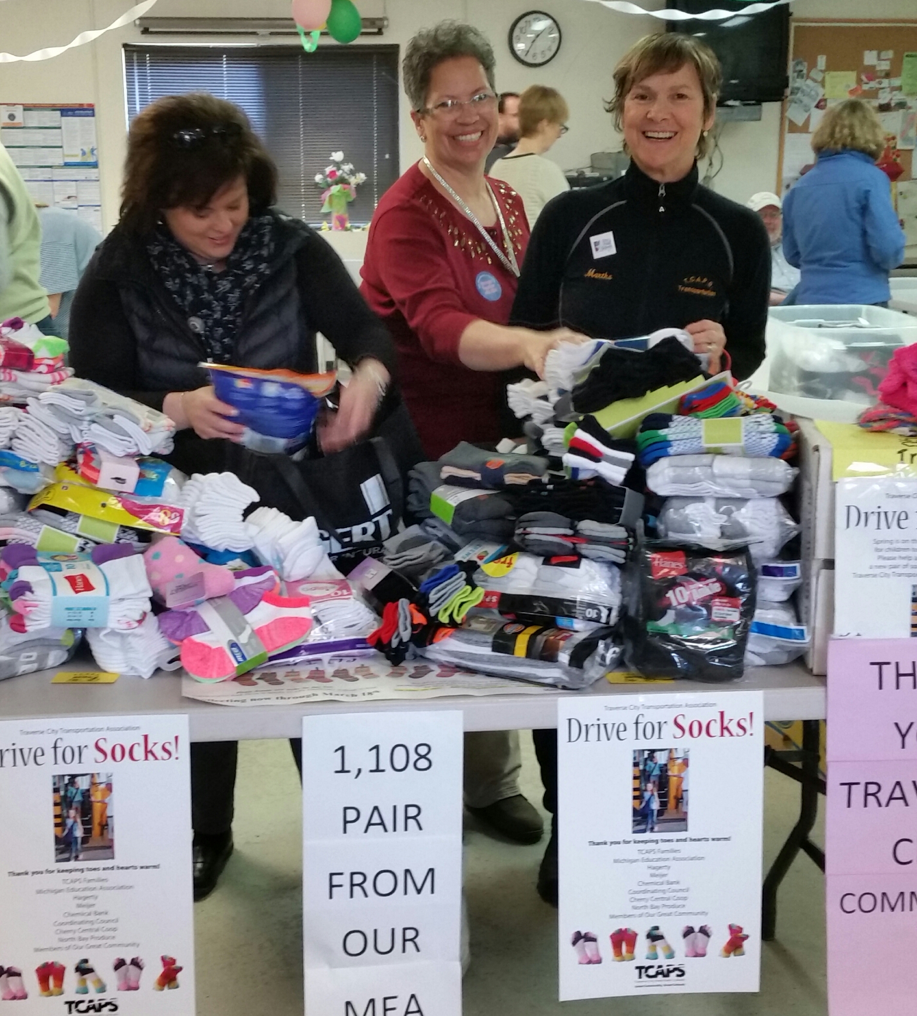 Later, sitting in her supervisor’s office crying about the incident, Alvarez was struck by a thought. The next day, she asked all of the kids on the bus if they wanted some warm socks to wear. When five or six hands shot up, the Traverse City Transportation Association’s “Warm Toes Sock Drive” was born.