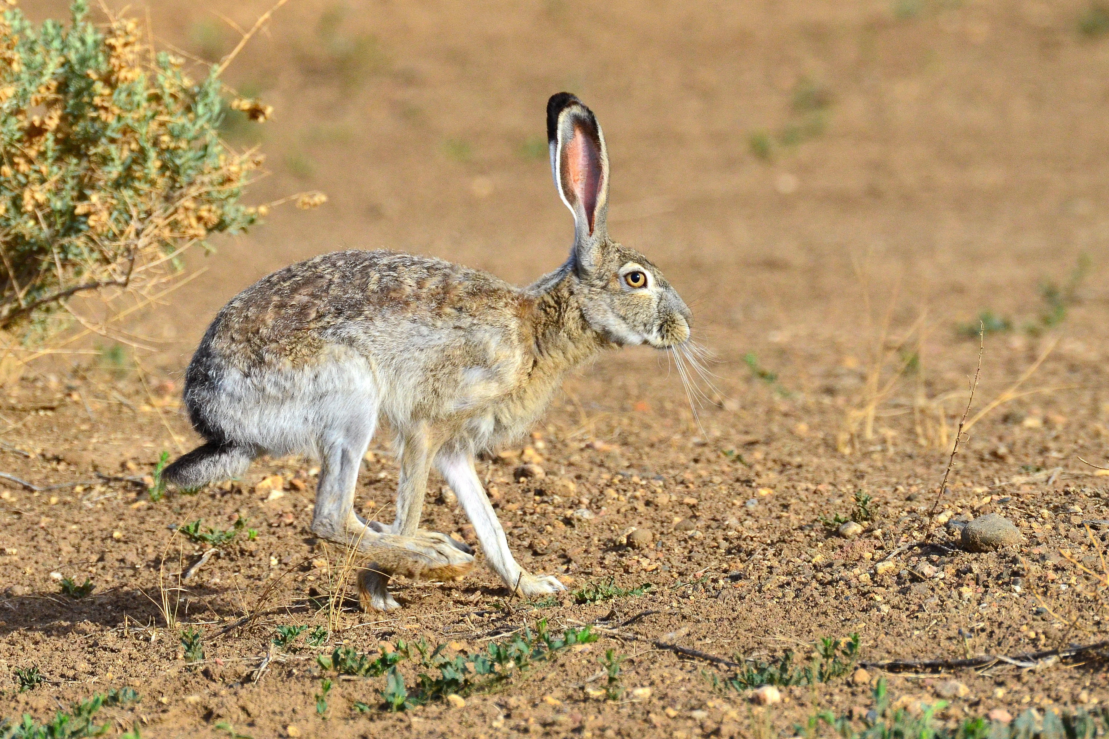This is a jackrabbit. Her feet are covered with fur so that they don't burn on the hot, desert sand.