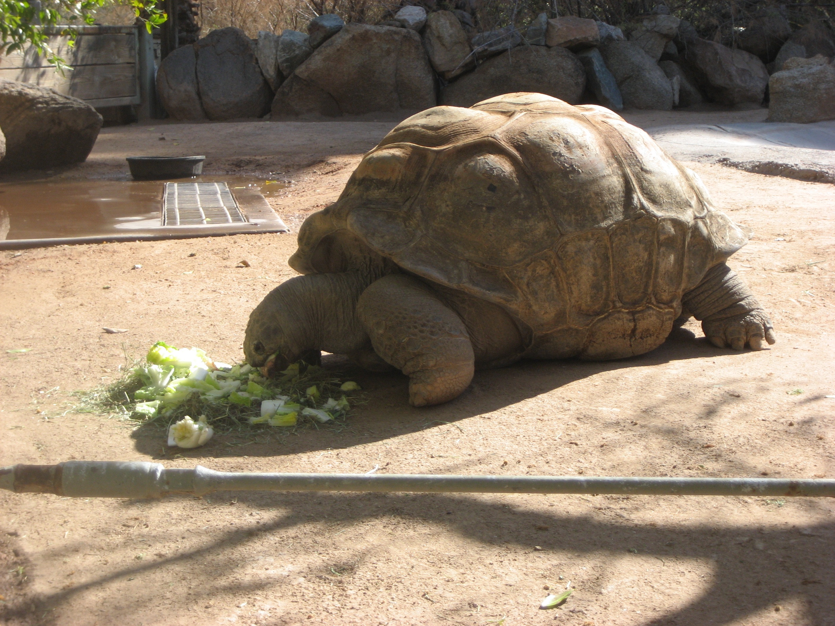This is a desert tortoise. His shell keeps him cool and protects him from desert predators.