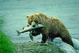 A bear catching a fish is a Predator and Prey Relationship that you might find in Temperate Forest.