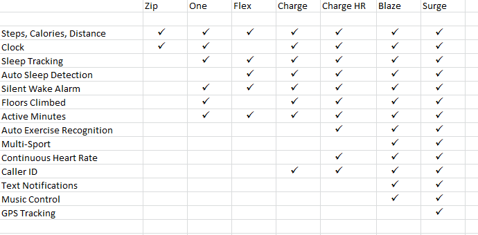 Fitbits current line of devices includes: The Fitbit One, Zip, Flex, Charge, Charge HR, Surge, and the all new Blaze.