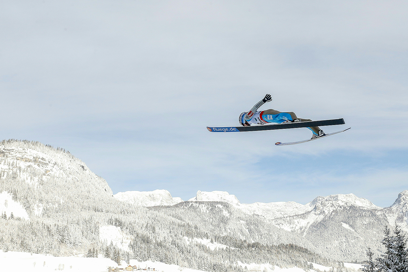 O norueguês Anders Fannemel durante treino oficial para o Ski Flying World Championship em Kulm, na Áustria. Foto: Erwin Schertau/ AFP