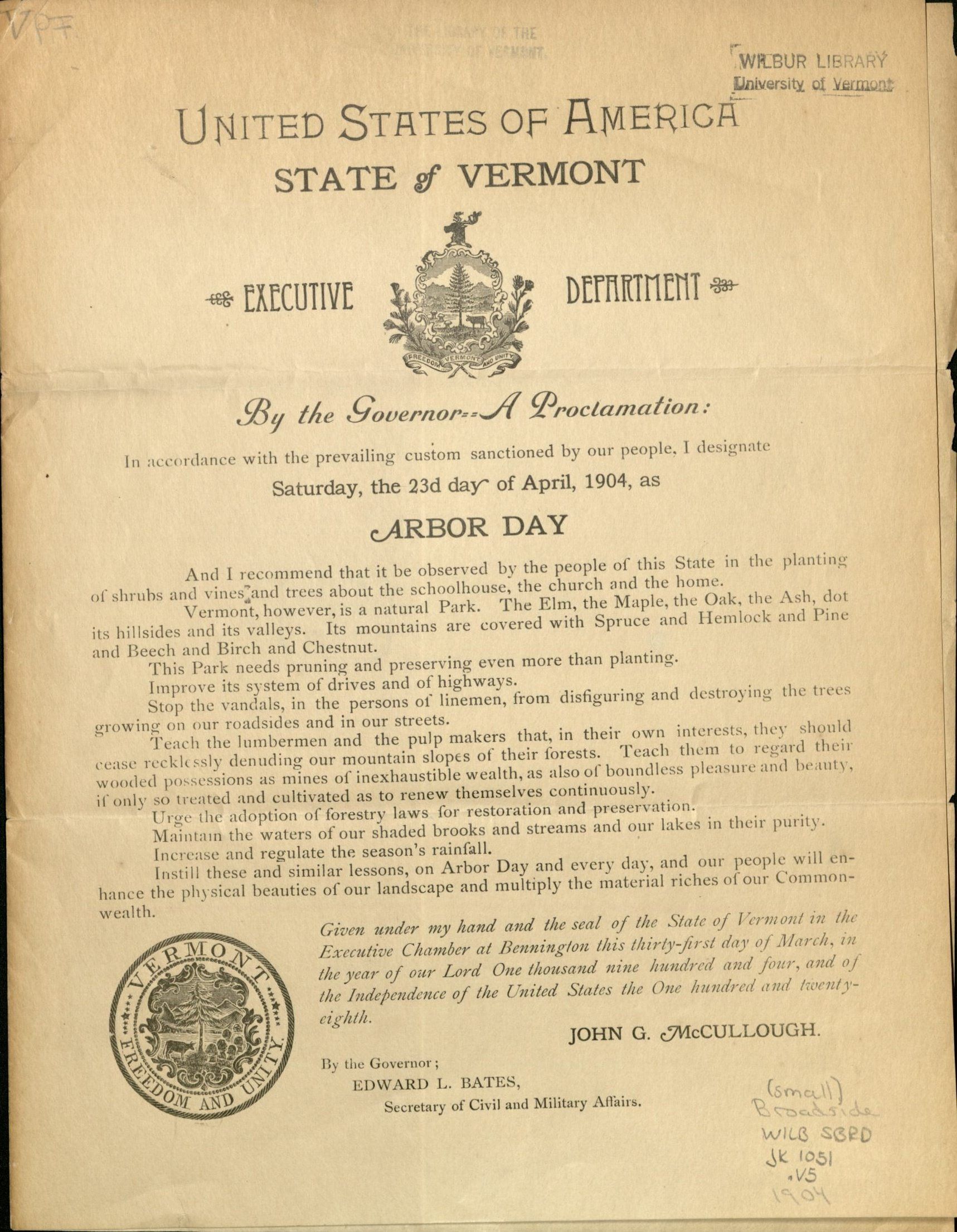 Vermont Arbor Day Proclamations A Peek Though the Trees