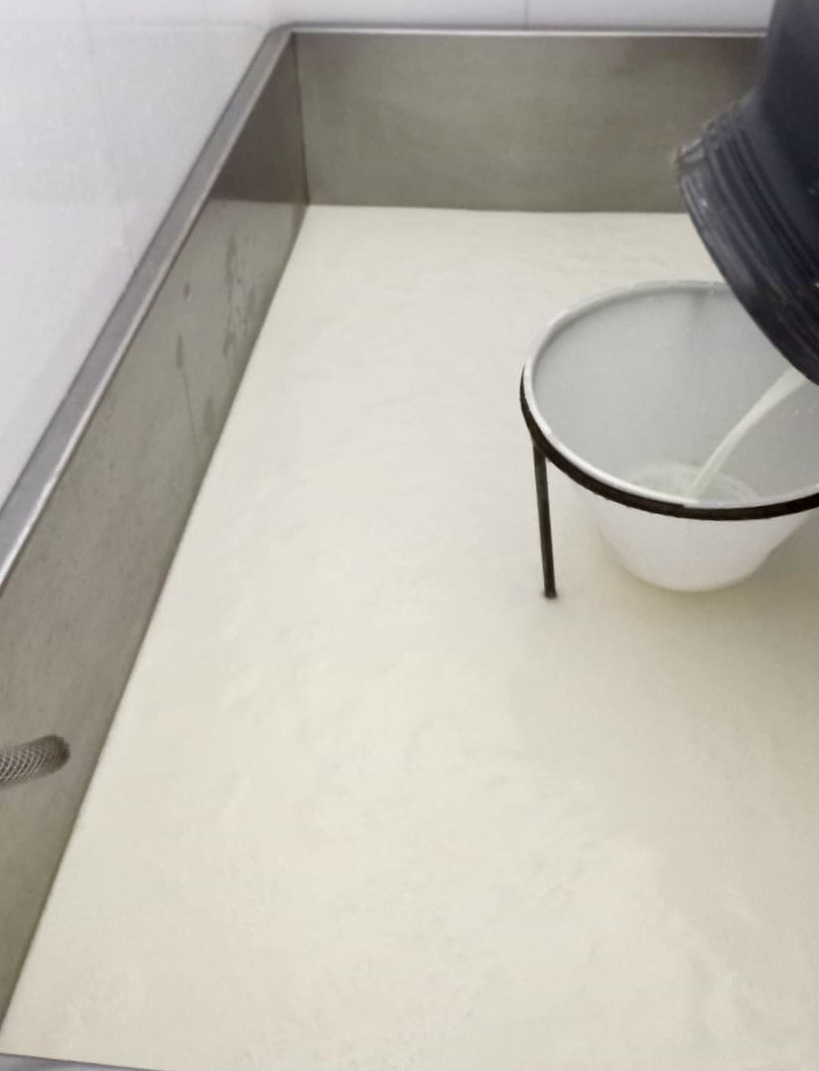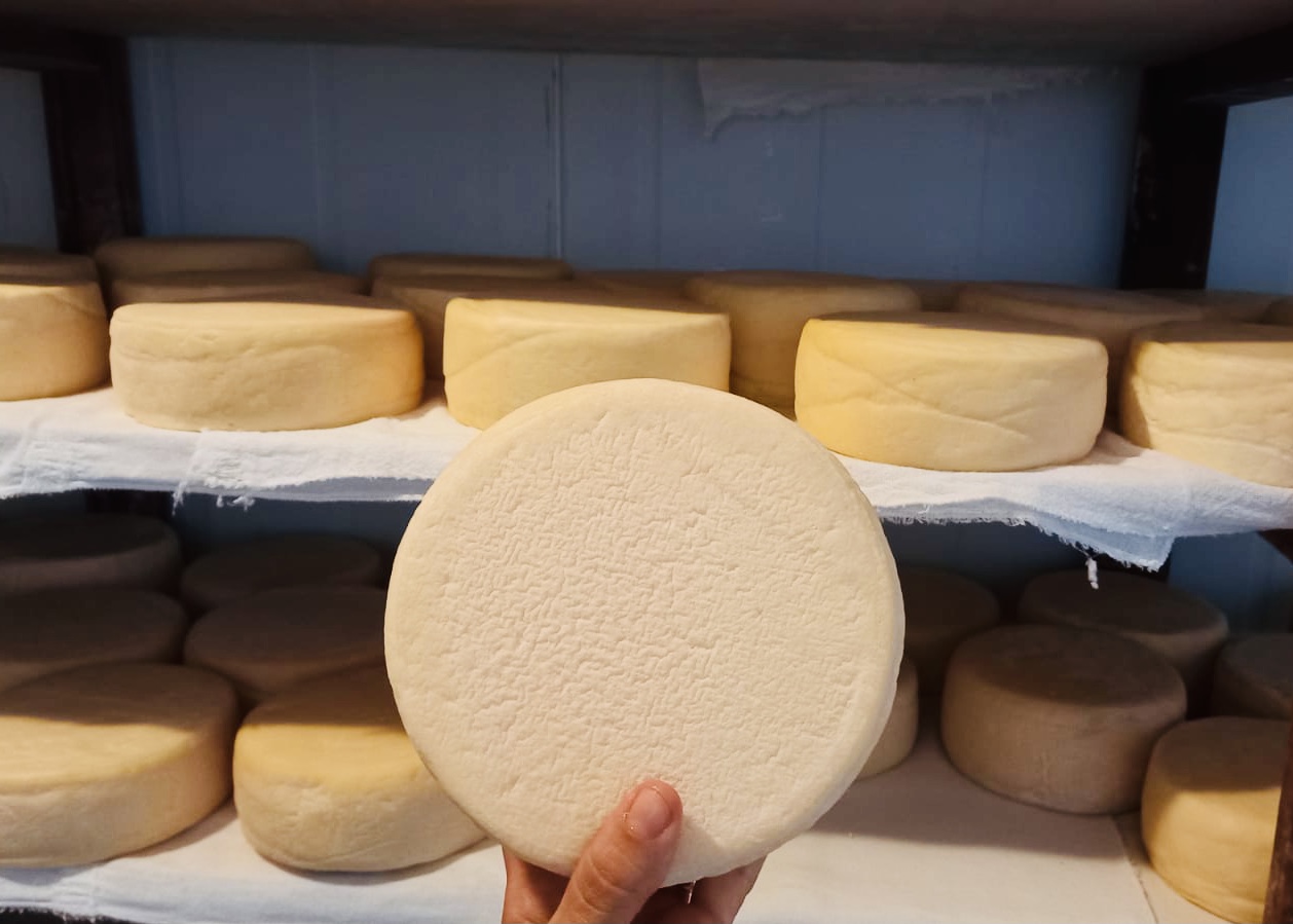 Com a chegada do leite ordenhado de suas próprias vacas, ela começa o processo de produção dos queijos na pequena queijaria que construiu junto à sua casa.