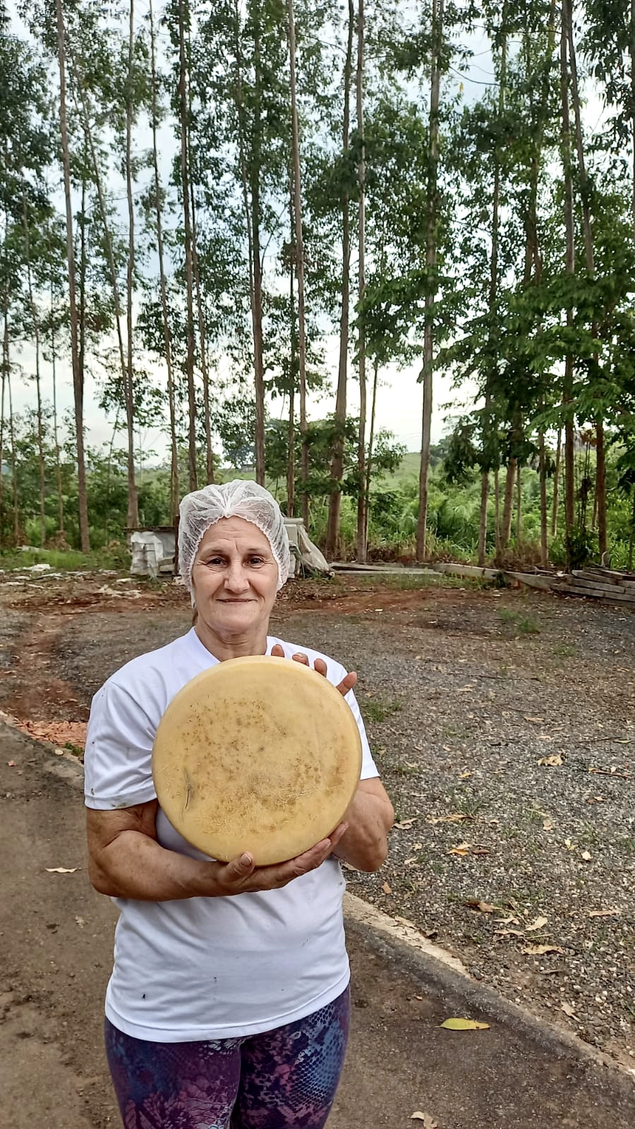 Dona Salete, que trabalha sozinha e faz tudo de forma artesanal, produz uma média de 25 queijos por dia, entre fresco e maturado por até 60 dias.