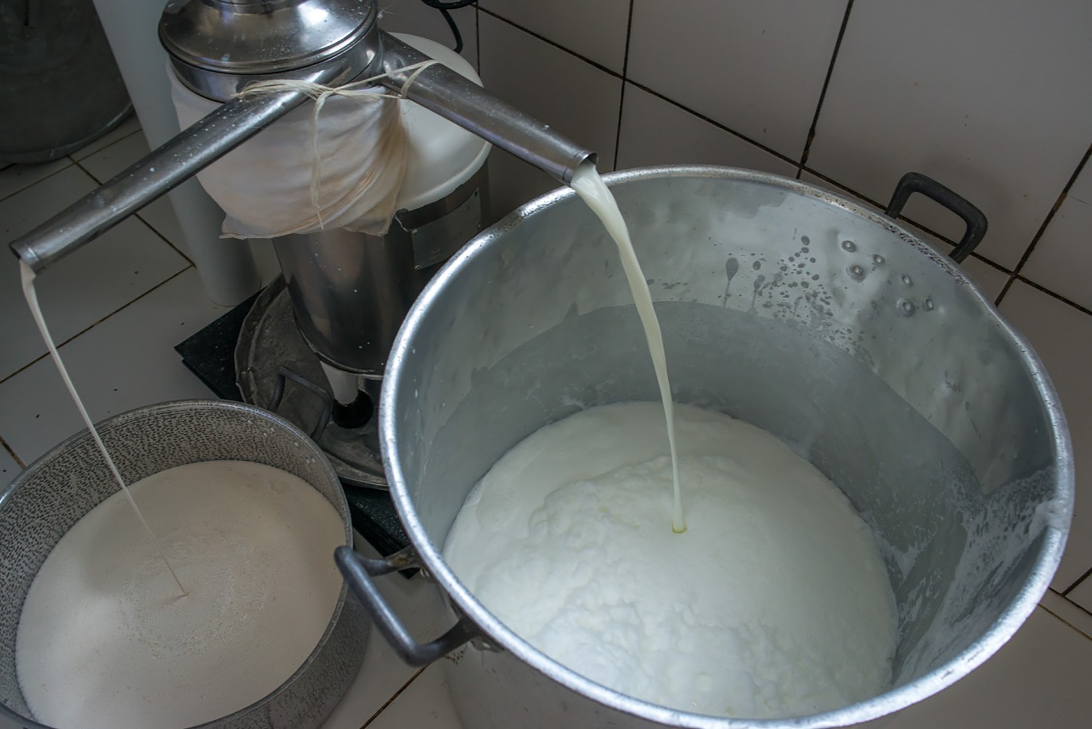 O restante, técnica transmitida oralmente, com a utilização de desnatadeira e adição do creme do leite do animal no momento certo.