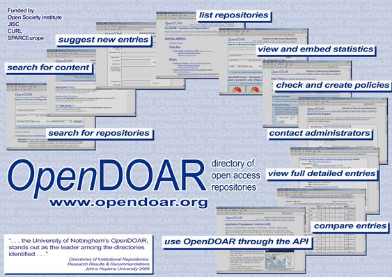 Kurumsal Arşivlerin kayıt edileceği harmanlama ve listeleme rehberlerinden biri olan OpenDOAR (Directory of Open Access Repositories) dünyadaki açık erişim arşivlerinin listesini veren bir dizindir. OpenDOAR Arşivleri ya da arşiv içeriklerini aramaya izin veren açık erişim arşivleri rehberidir. Ek olarak, en iyi uygulamaları paylaşmak ve arşiv altyapısının kalitesini geliştirmek için hem arşiv yöneticilerine hem de servis sağlayıcılara araç ve destek sağlar.