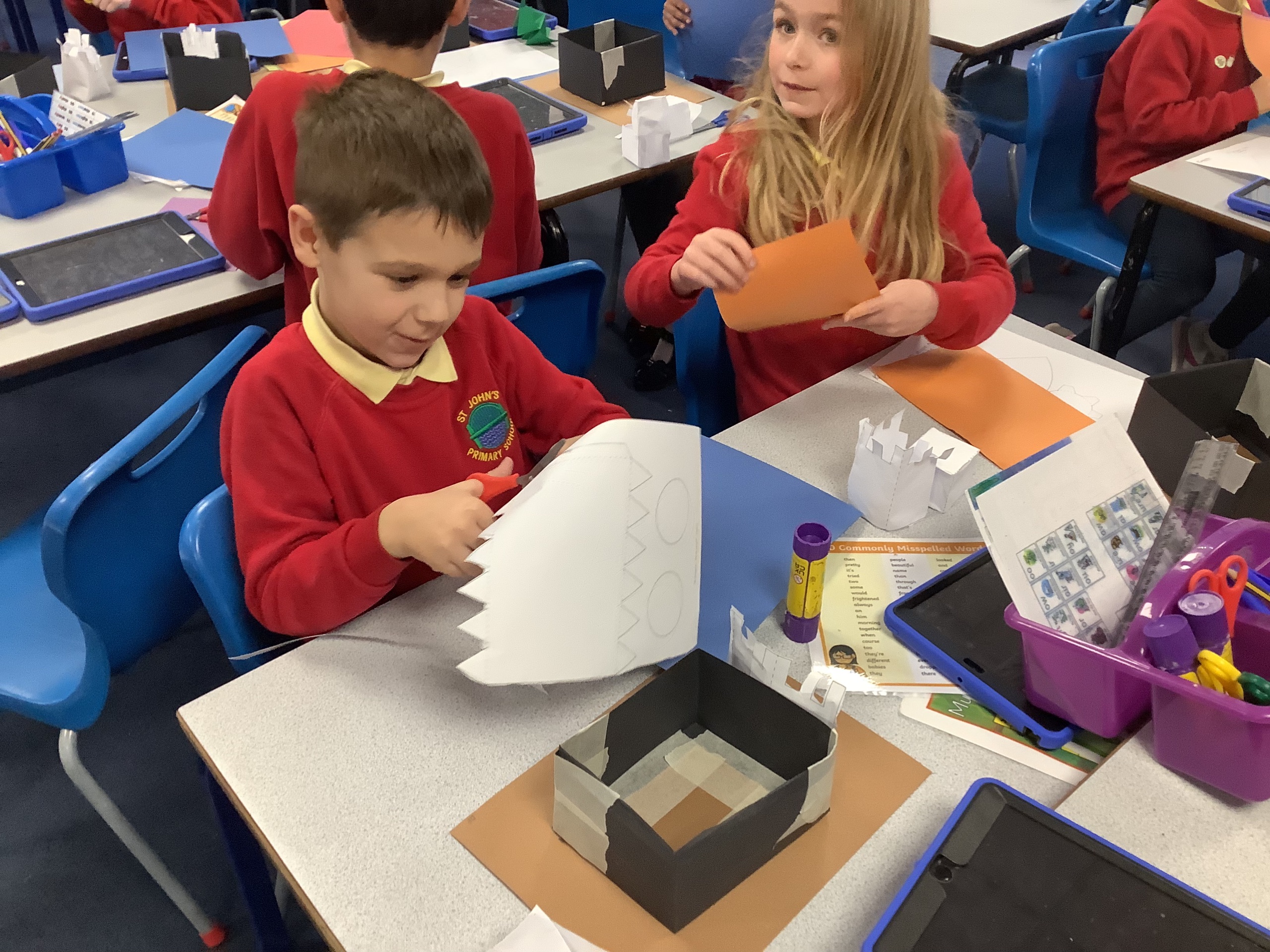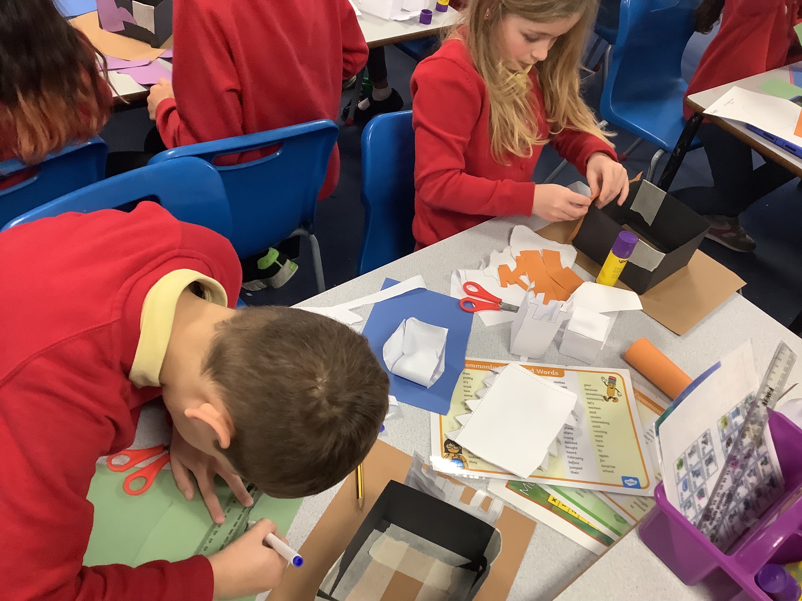 On Friday, the class then began creating their castle structure using card. We had to follow lots of instructions closely to do this. It was also really difficult to do and required a lot of resilience.