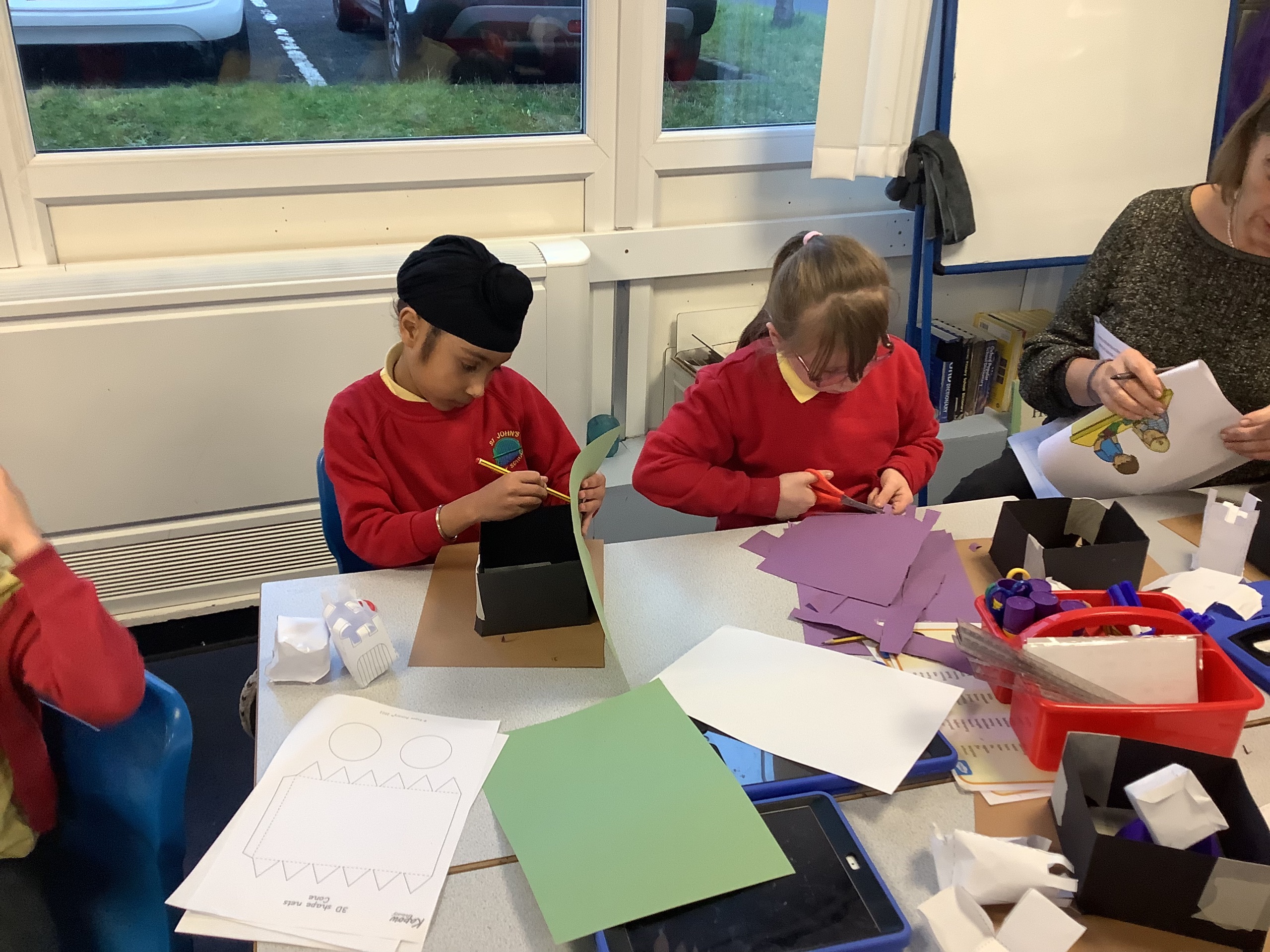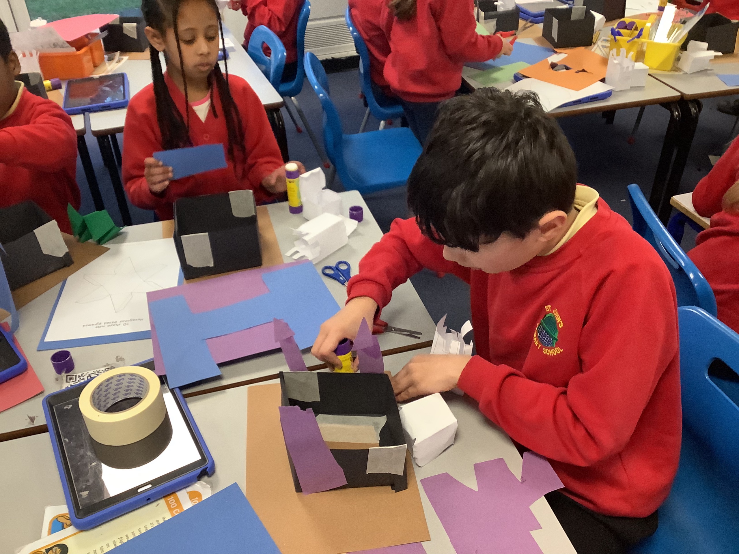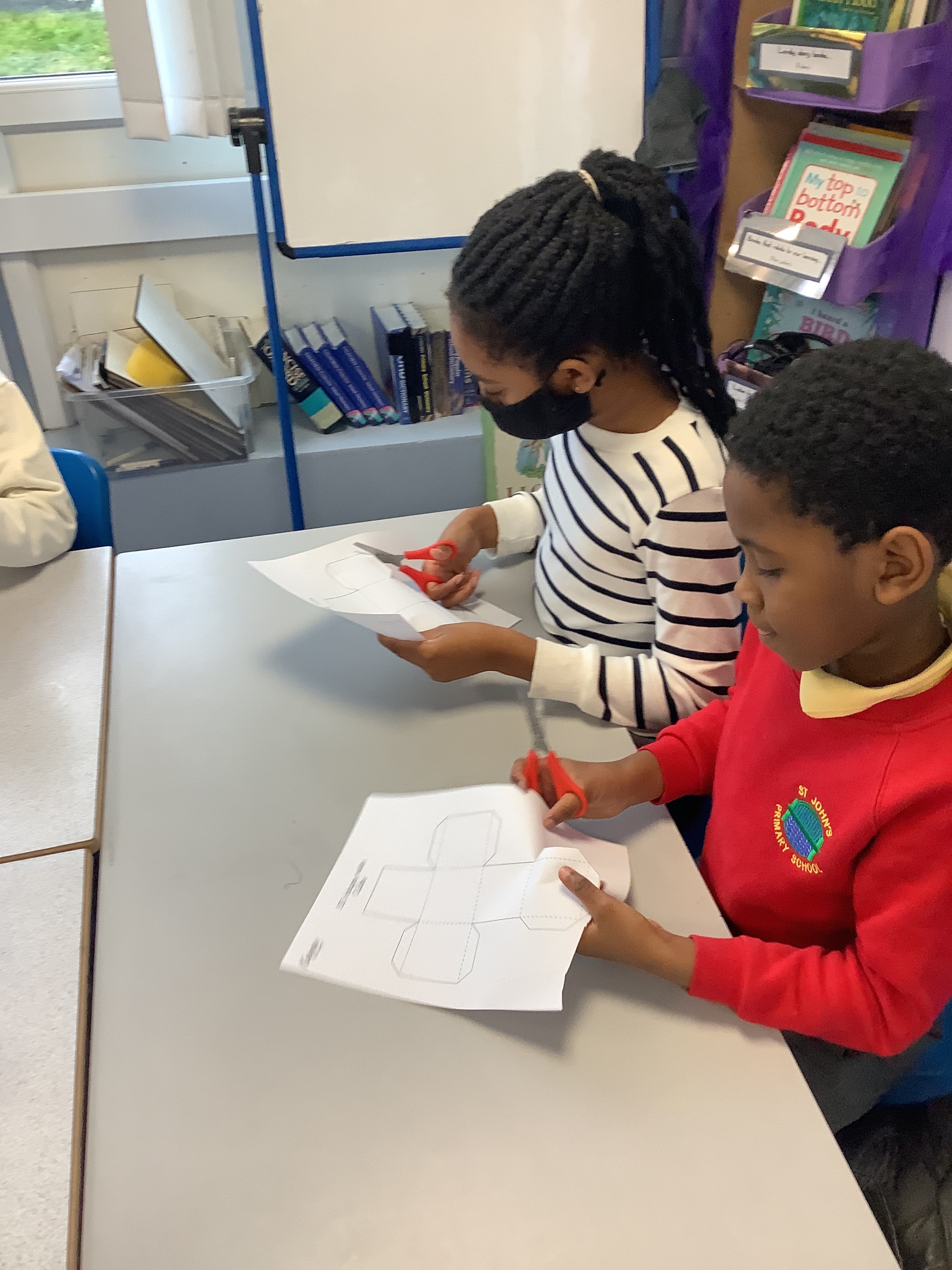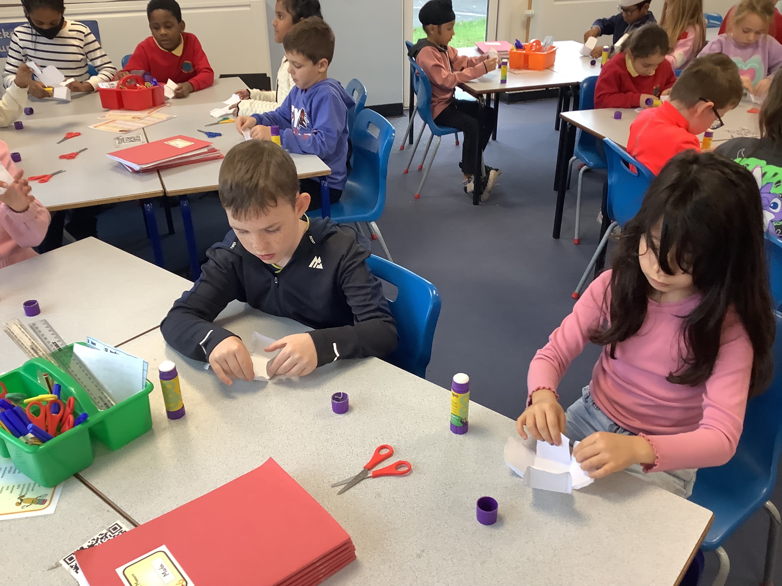 In the next maths lesson, we used nets to create 3D shapes. This was really tricky to do and required a lot of concentration.