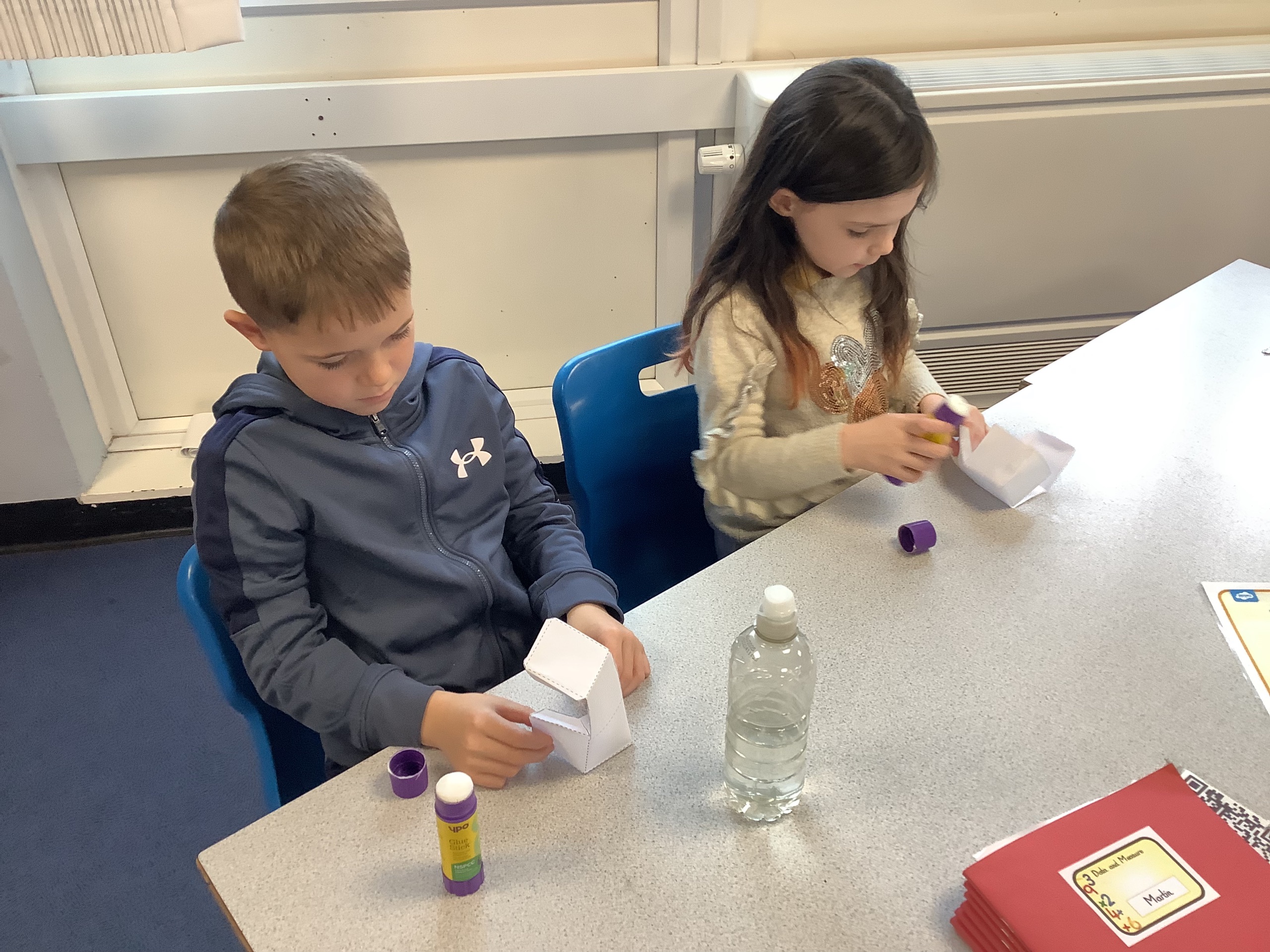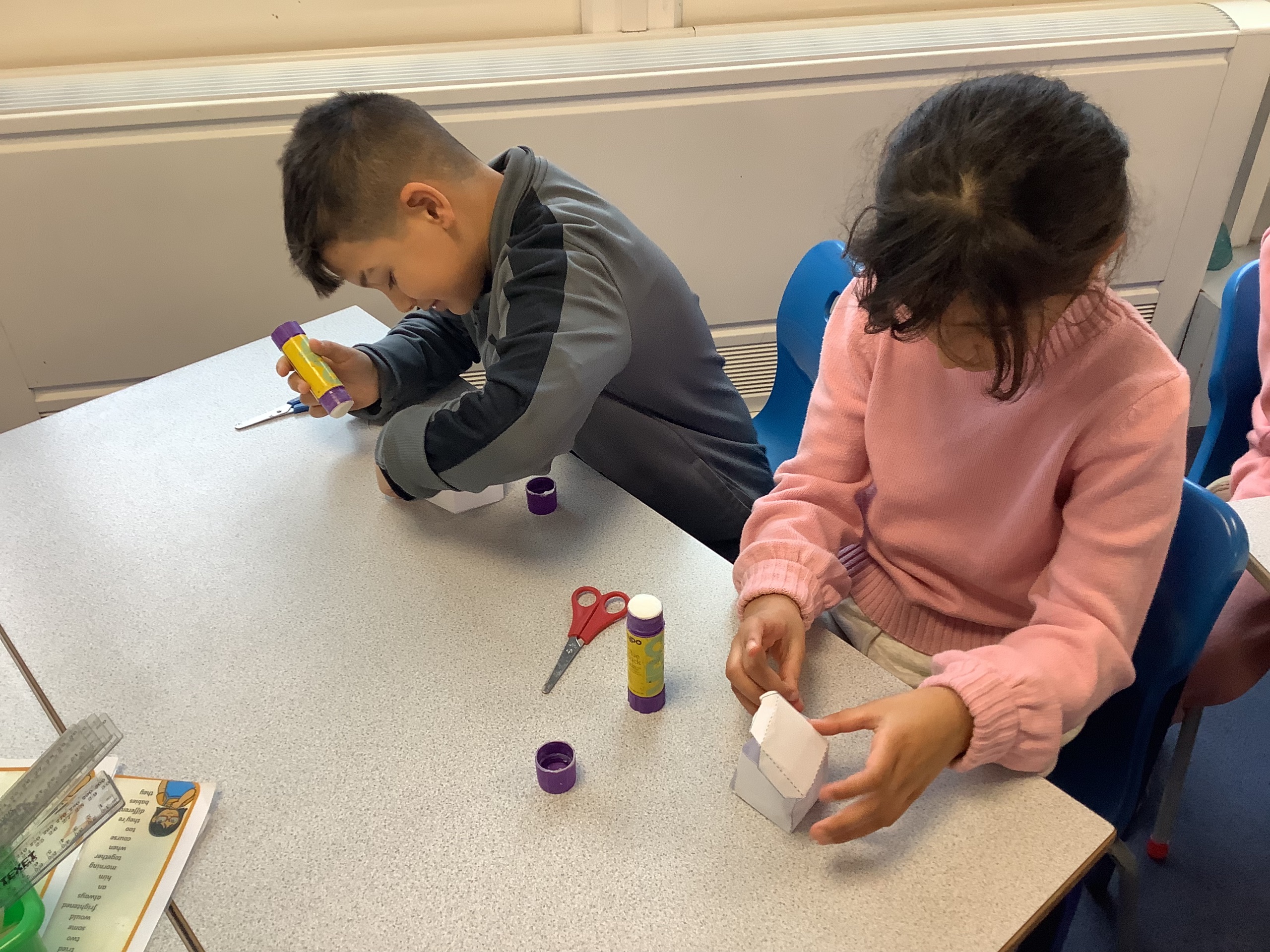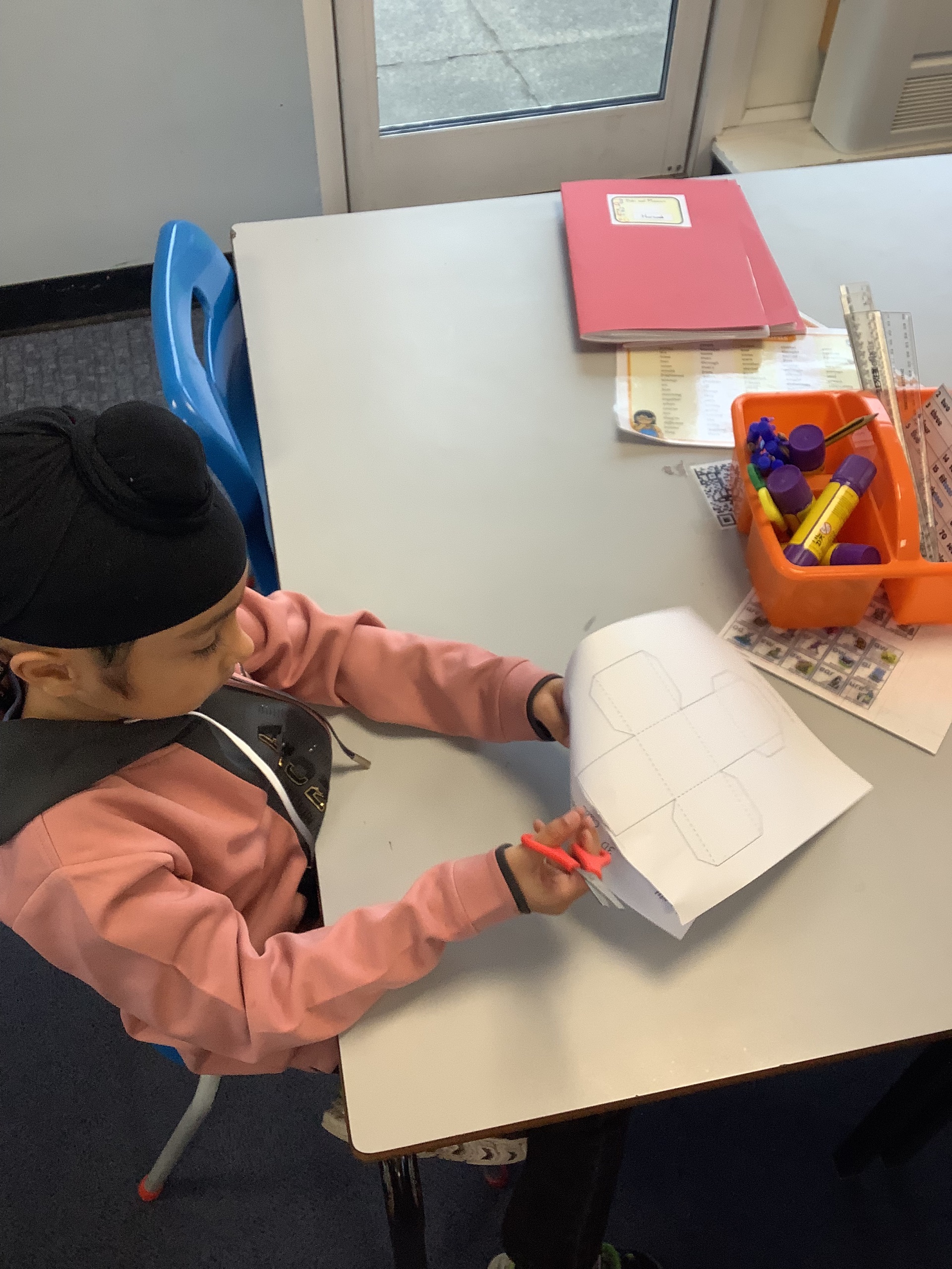 In the next maths lesson, we used nets to create 3D shapes. This was really tricky to do and required a lot of concentration.