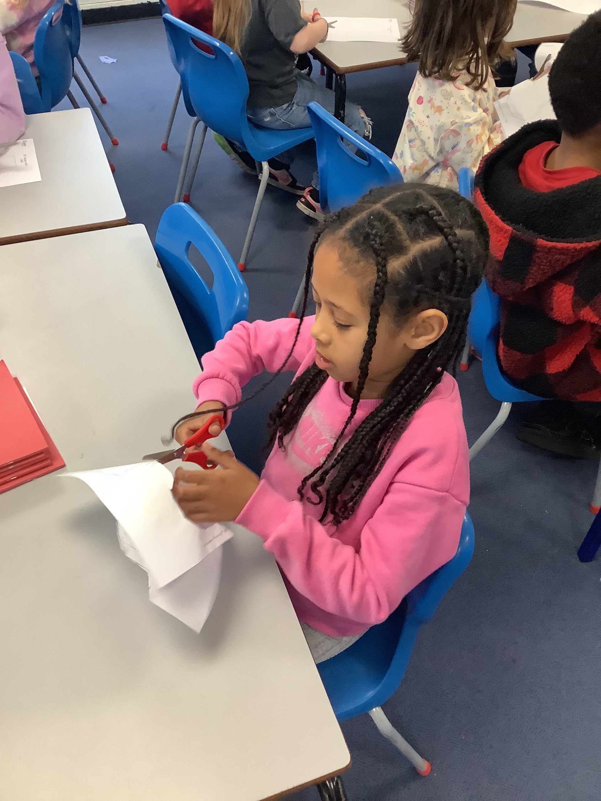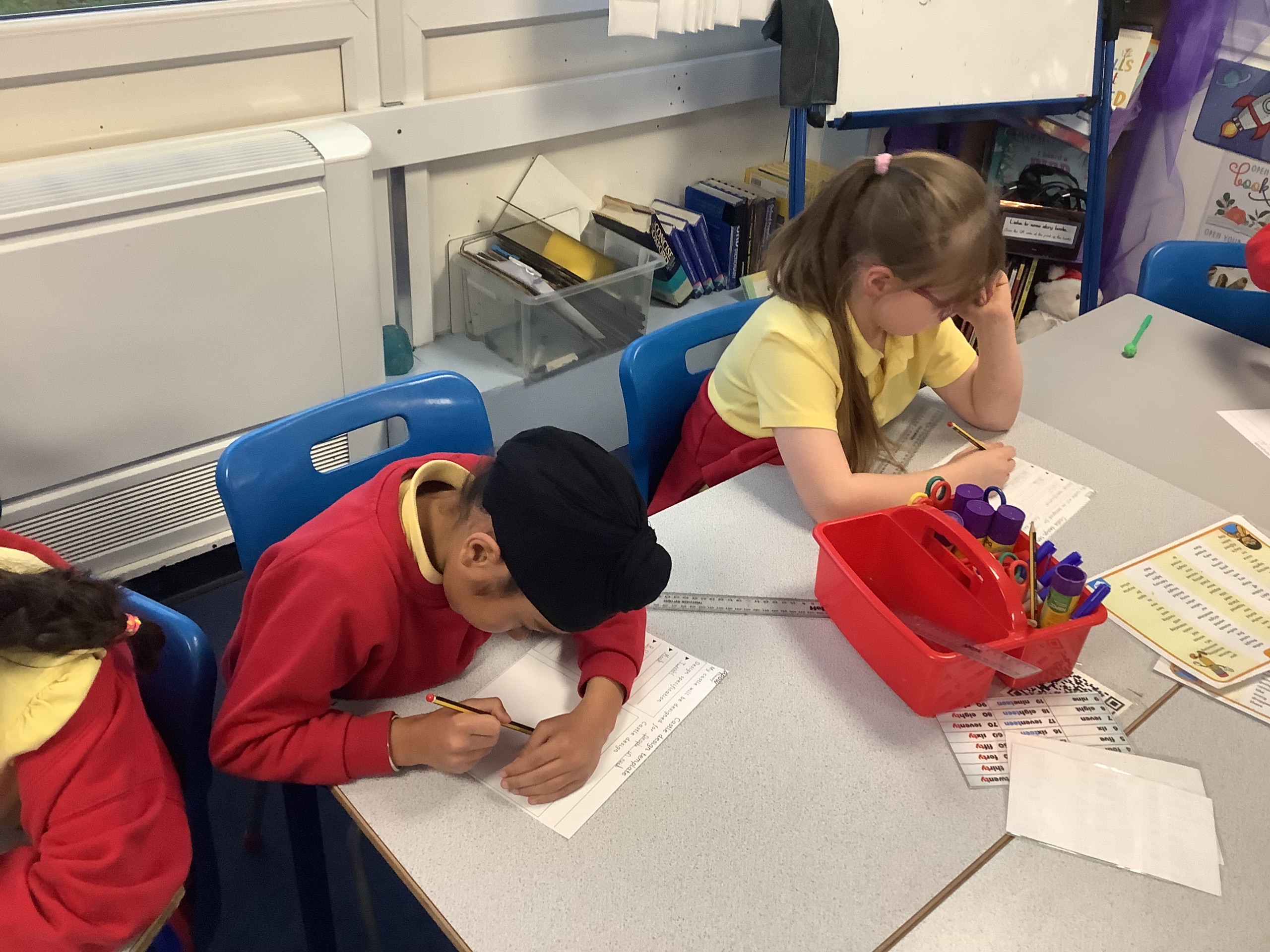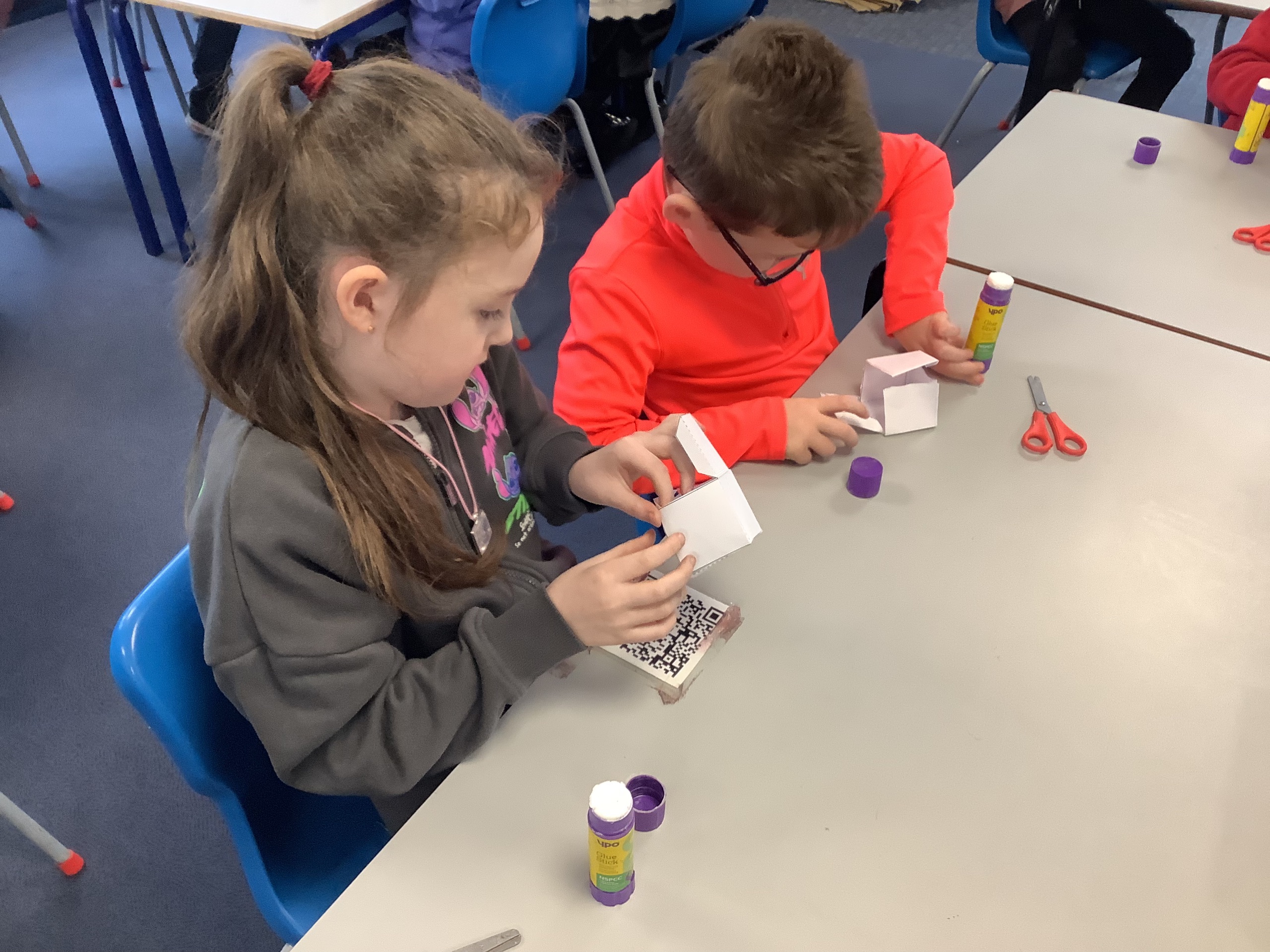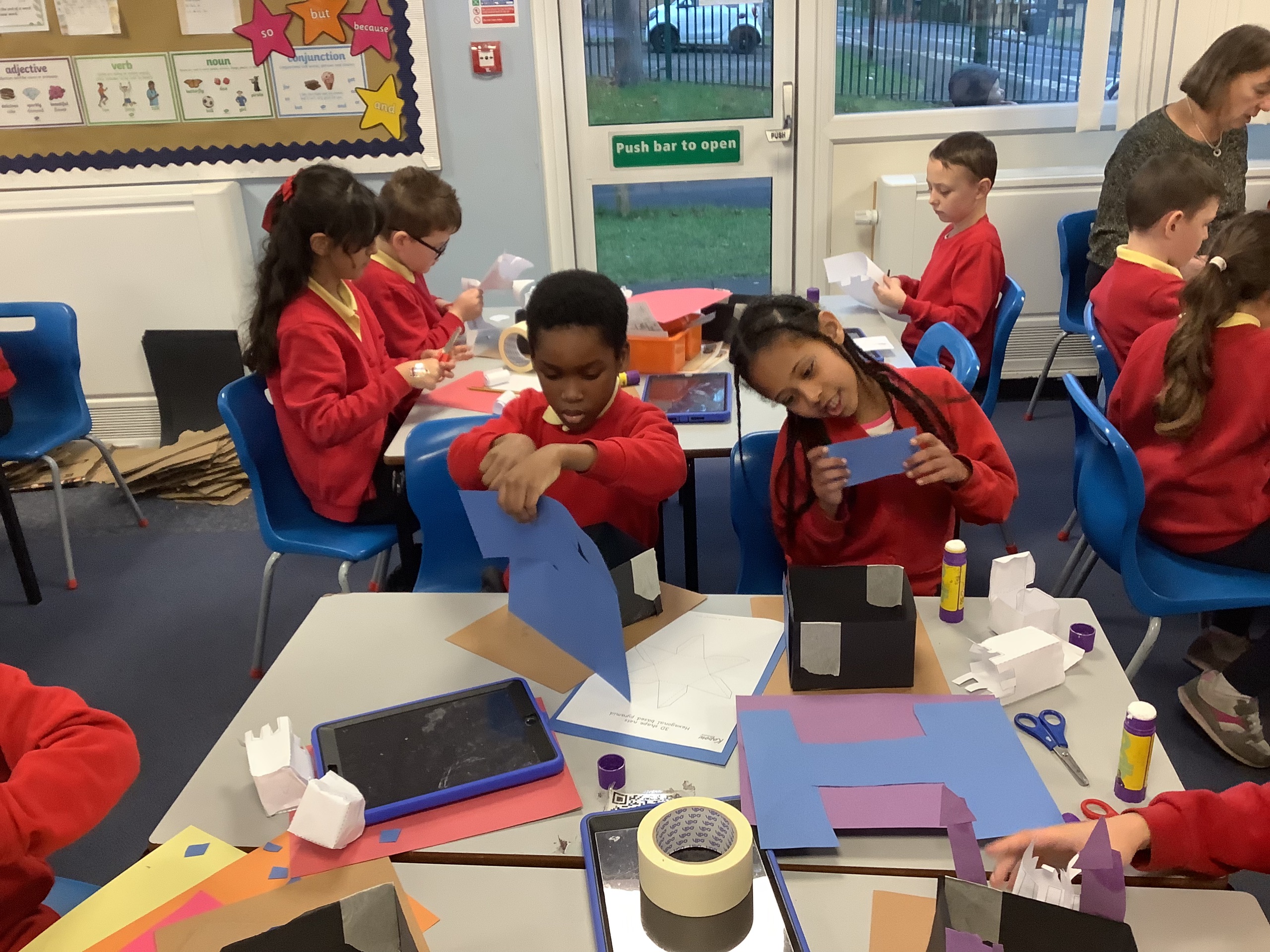 In the next maths lesson, we used nets to create 3D shapes. This was really tricky to do and required a lot of concentration.