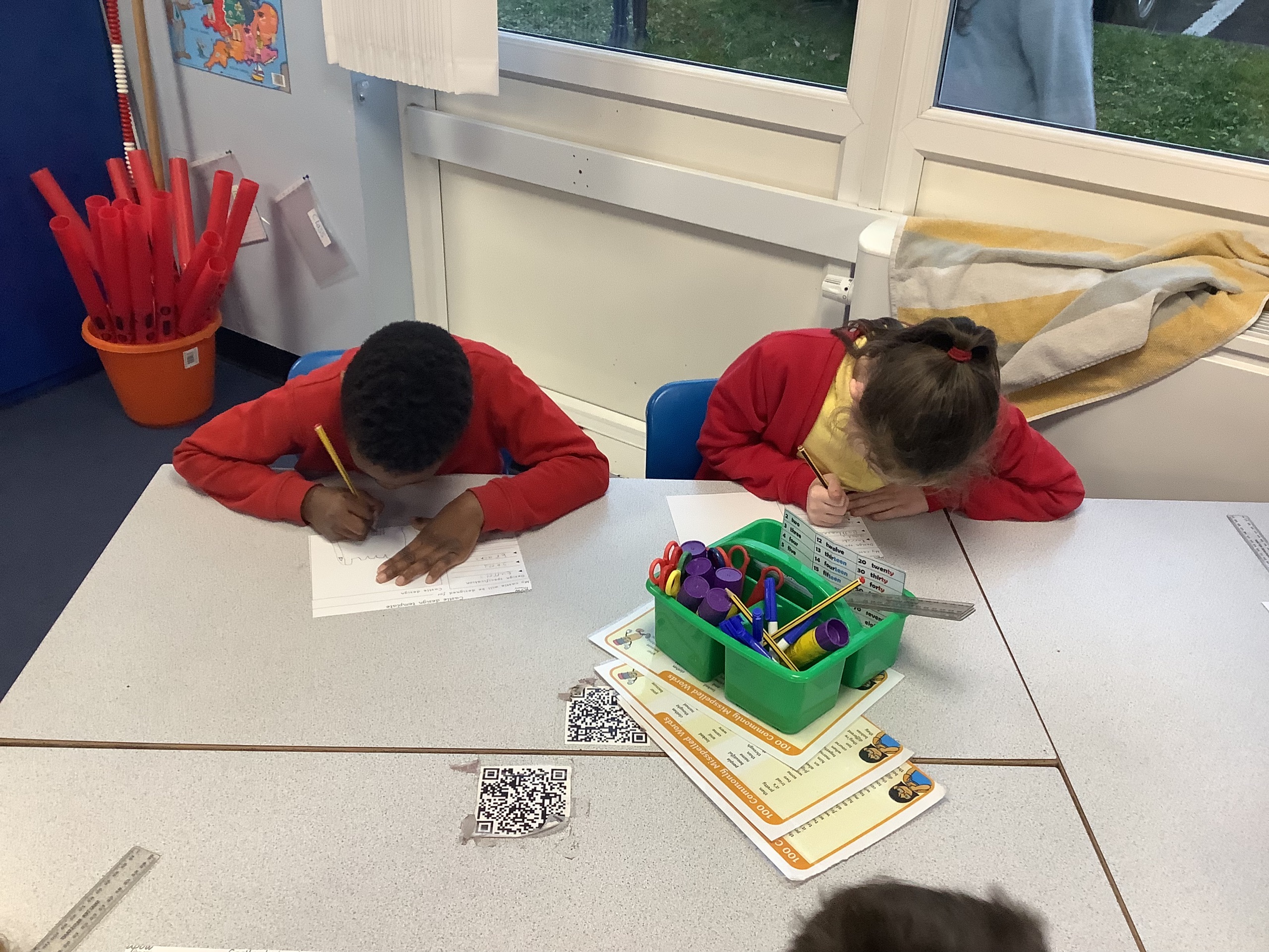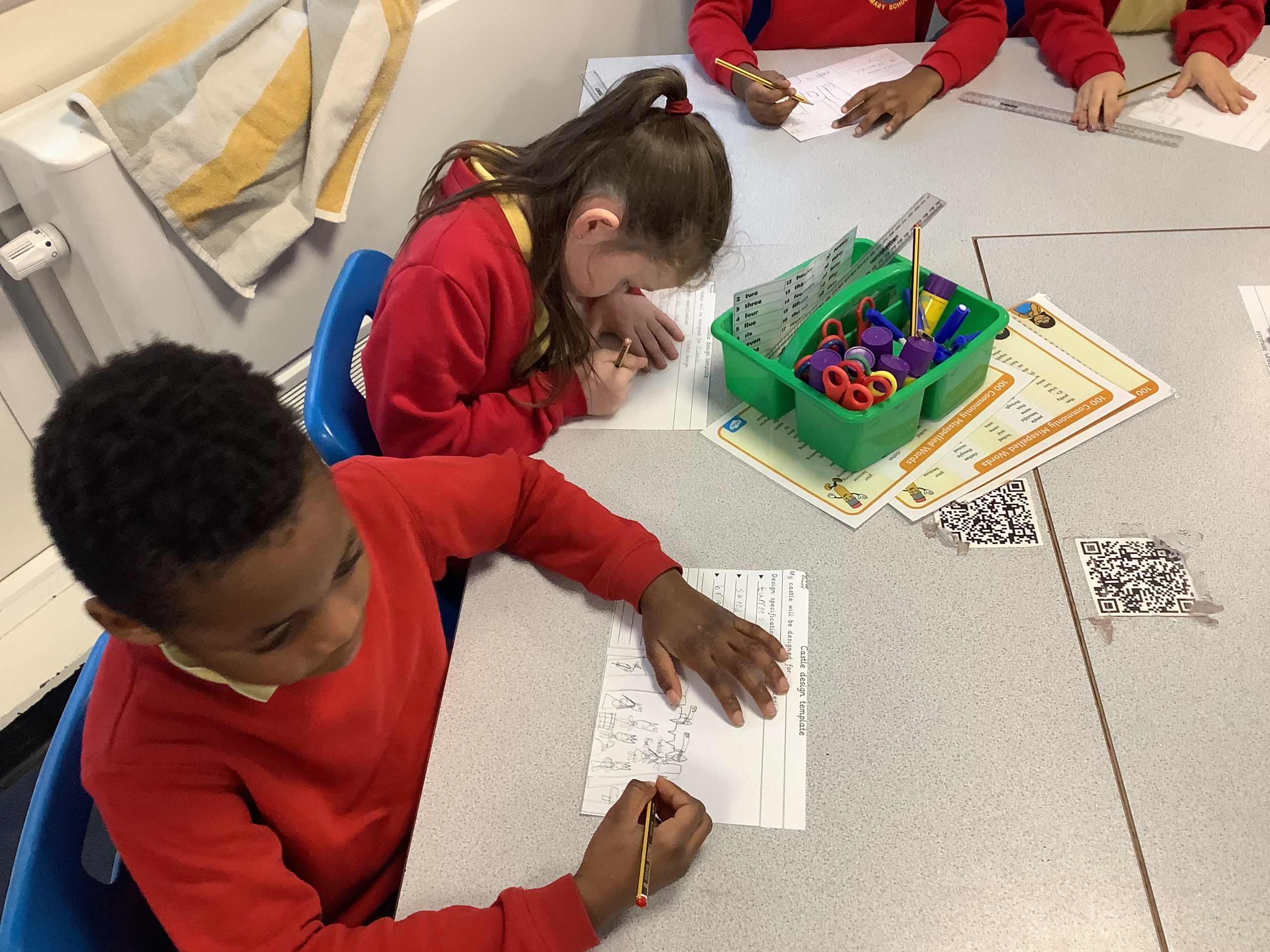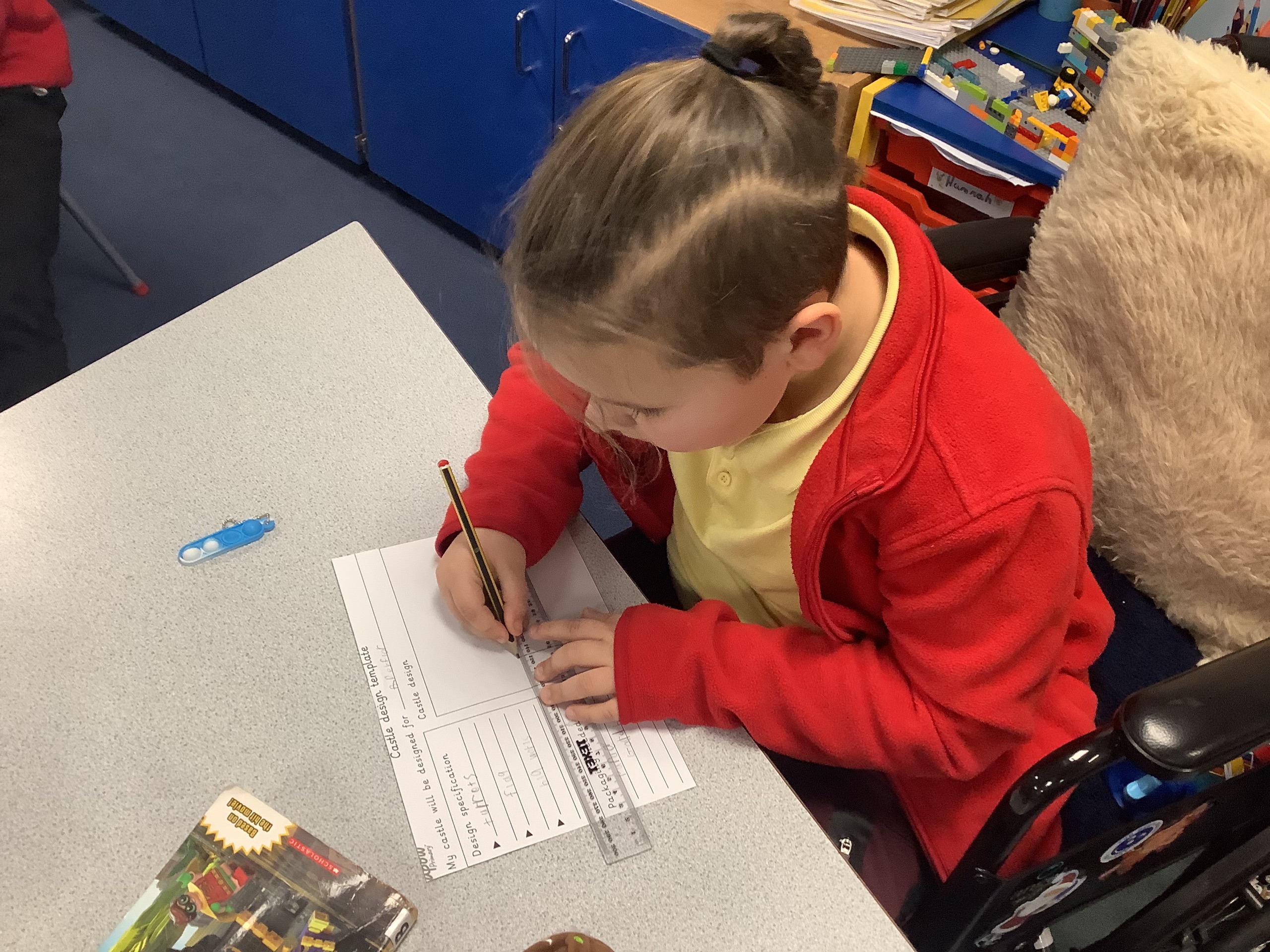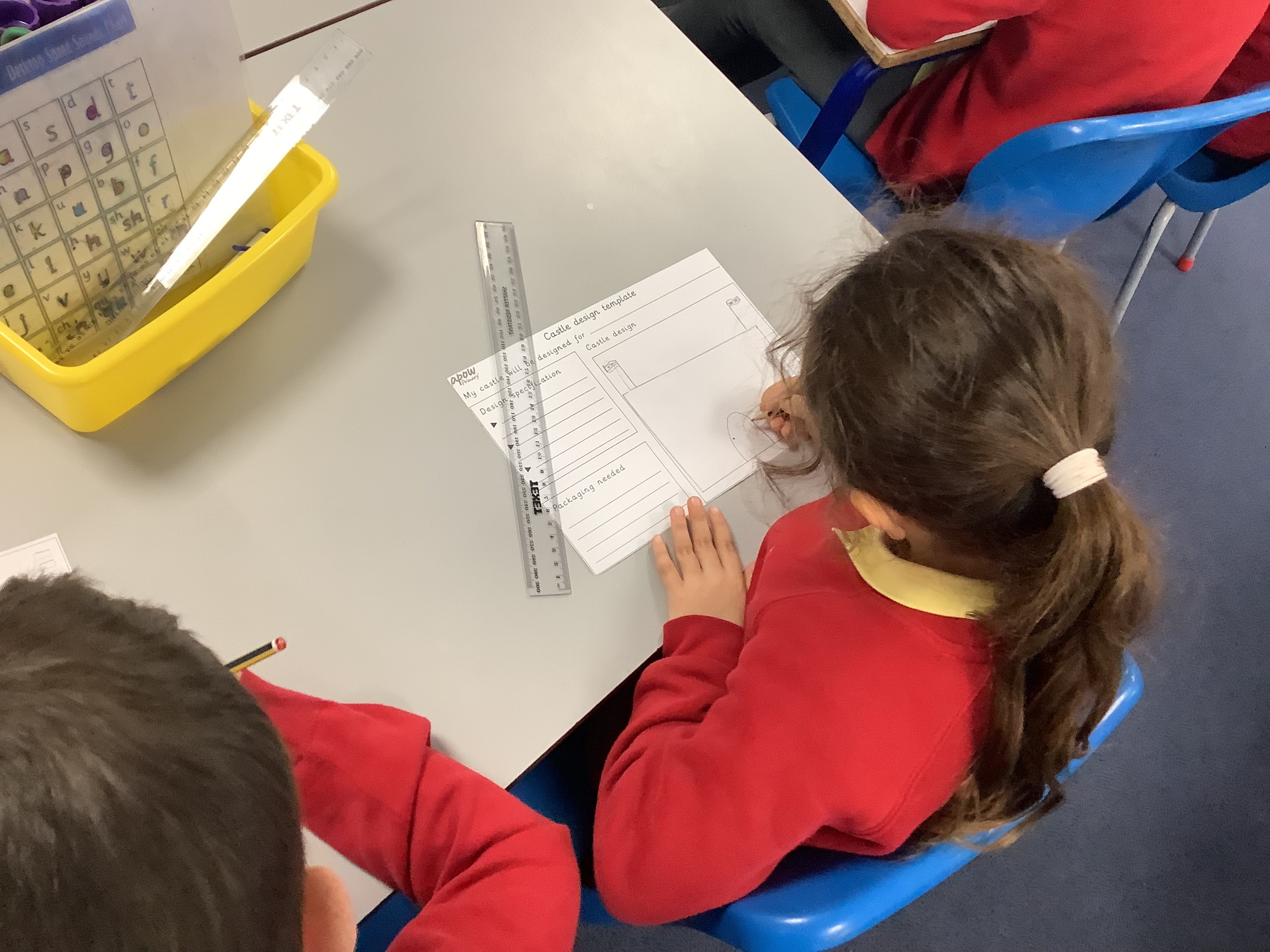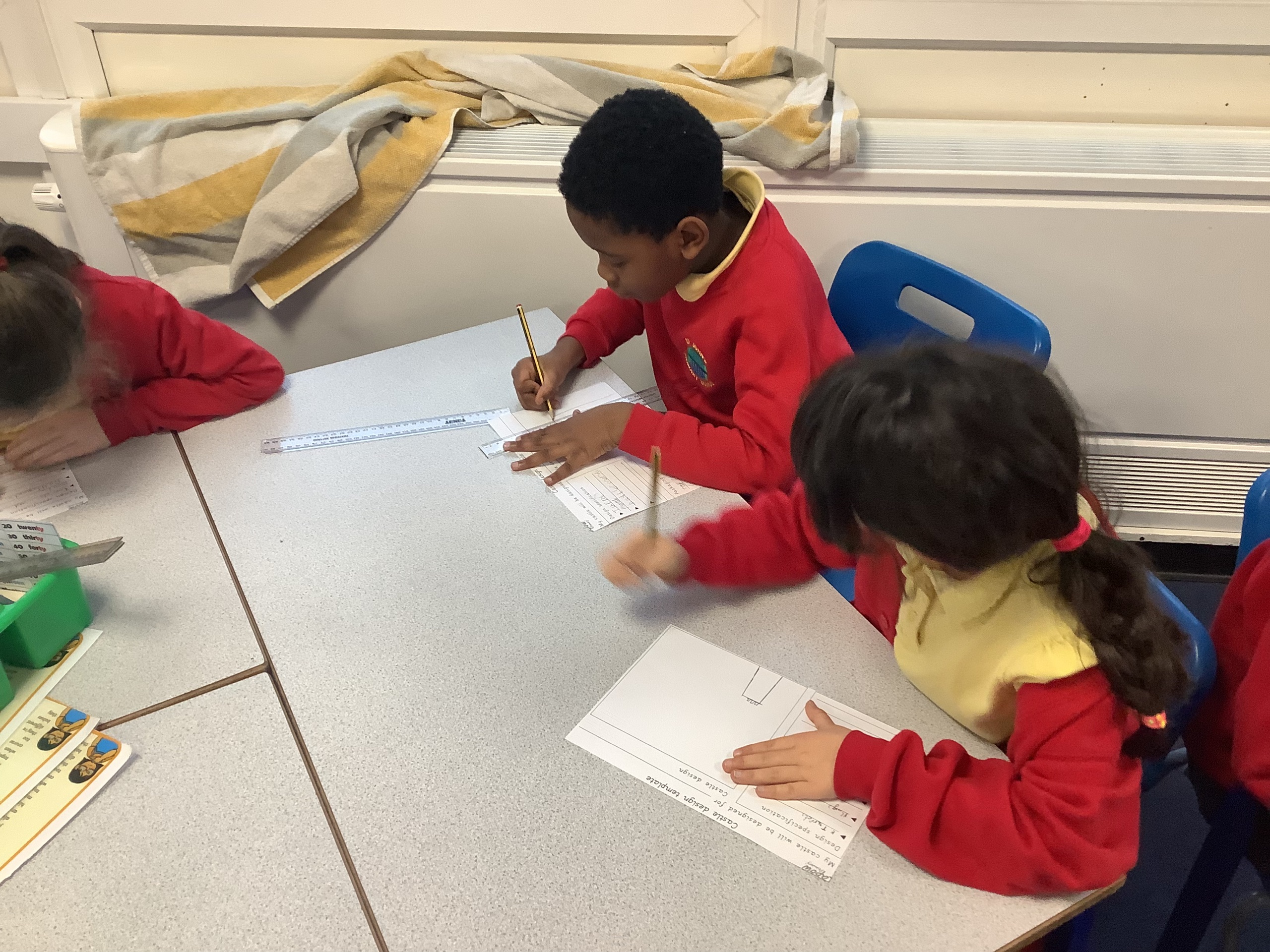 Each member of the class designed their own plan for their castle. They had to think about the different materials they would use to make their design.