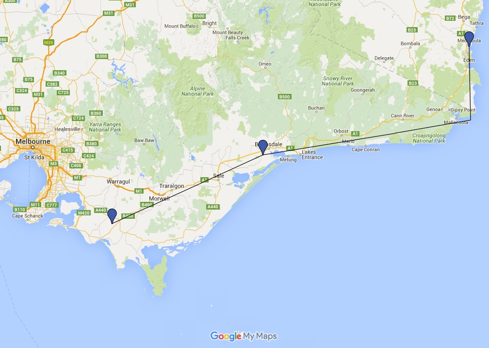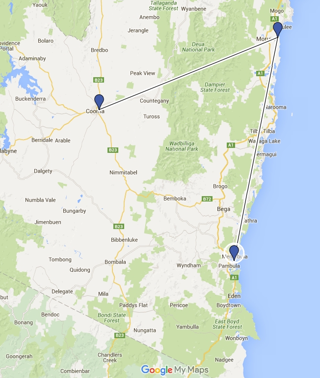 20. Dezember - Flug Cooma-Moruya-Merimbula
