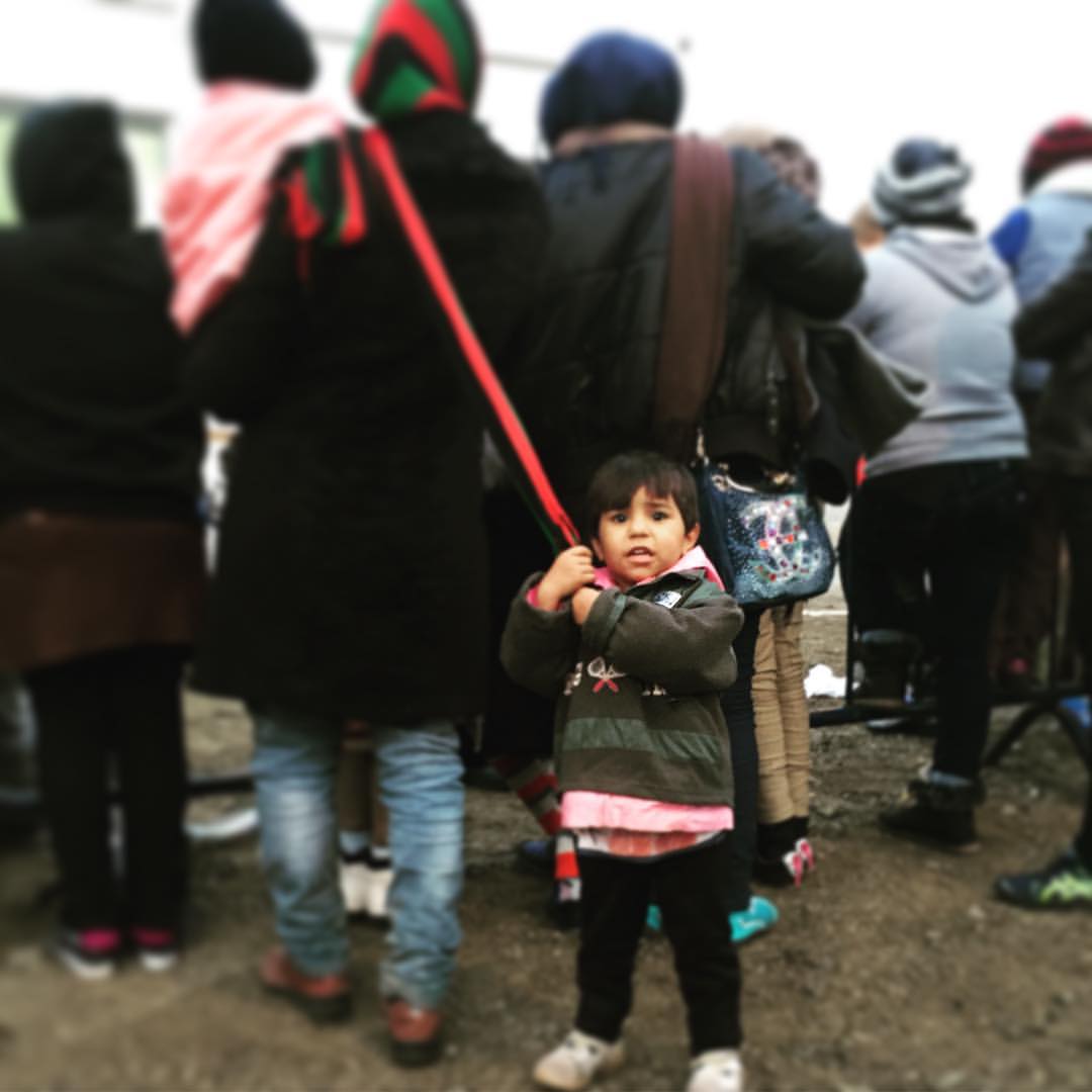 As they leave the train, refugees line up to be registered. It takes about 90 minutes for them to finish the registration process and re-board the train. They stand in lines holding babies and all their worldly goods. For some reason, the new train is delayed so after they finish registration, they stand corralled within police barricades awaiting the train.