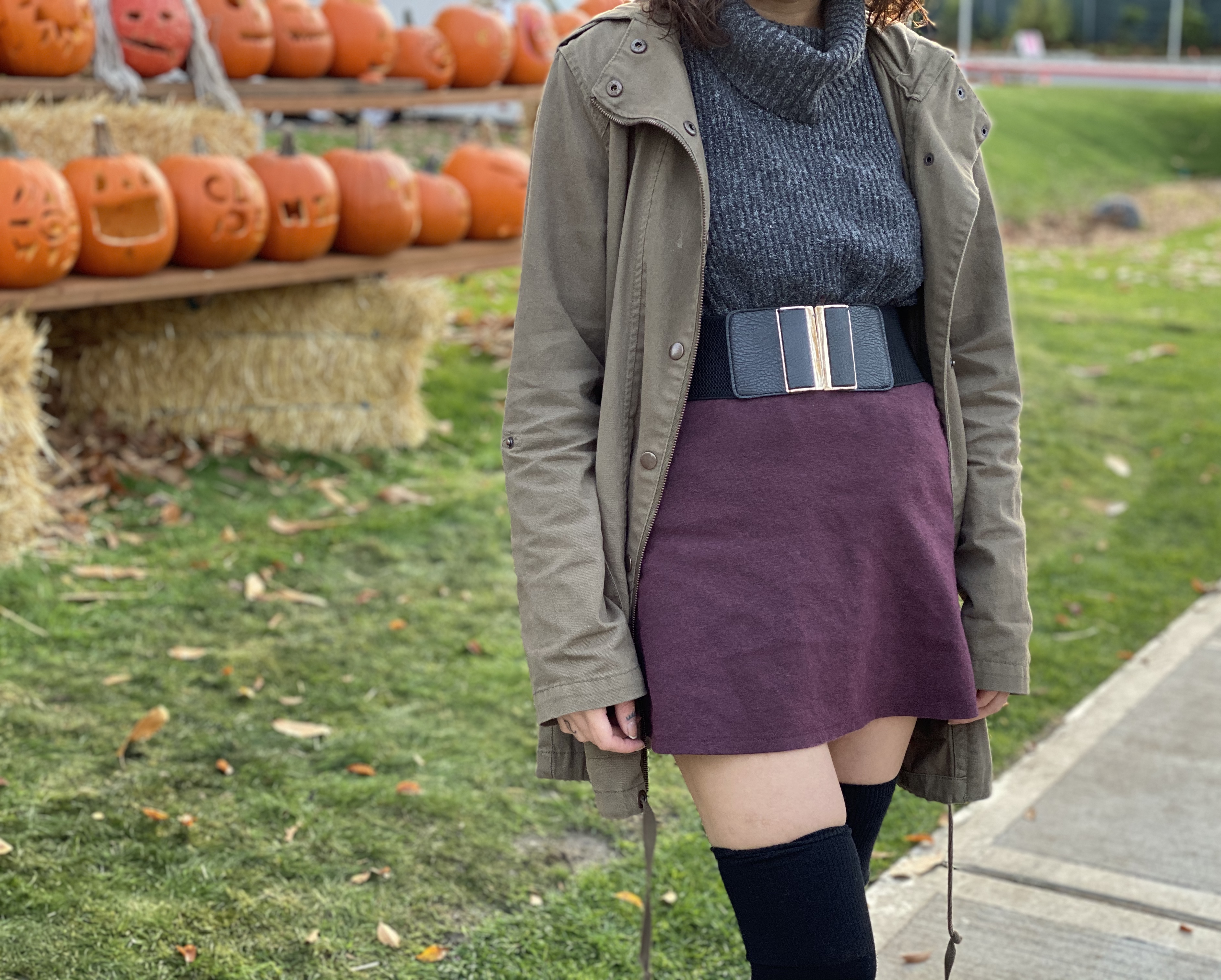 So now the question is, what fall essentials should you be shopping for? My suggestion would be to wear a basic long sleeve mock neck or turtle neck top, and style it with a trendy patterned bottom like a skirt or trouser. Glen plaid is a really fashionable pattern that you’ll be able to find at any fast fashion retailer this season. It looks chic and is usually neutral in color which makes it easy to add some visual interest to your outfit. If you don’t like shirts with high necks, you can always wear a top or bodysuit with button details which are an adorable alternate choice.