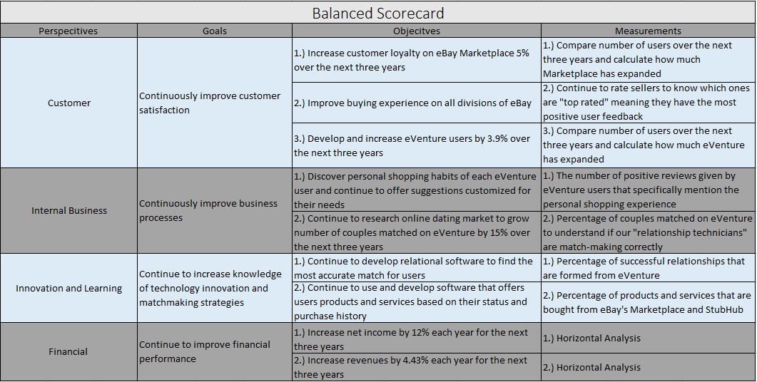 - Create eVenture - a new division of eBay that connects users to help them find their true love and becomes the personalized shopping source for everything they want or need for the rest of their lives.