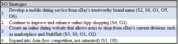 We recommend the implementation of eVenture - a new division of eBay. eVenture will connect single users through their website to help them find a long lasting relationship. eVenture is a website that will offer personalized suggestions from top rated marketplace sellers customized for you and your loved one for each stage of your life - whether you are single, dating, engaged, married, expecting, etc. - eVenture is the customized source for all of your shopping needs!