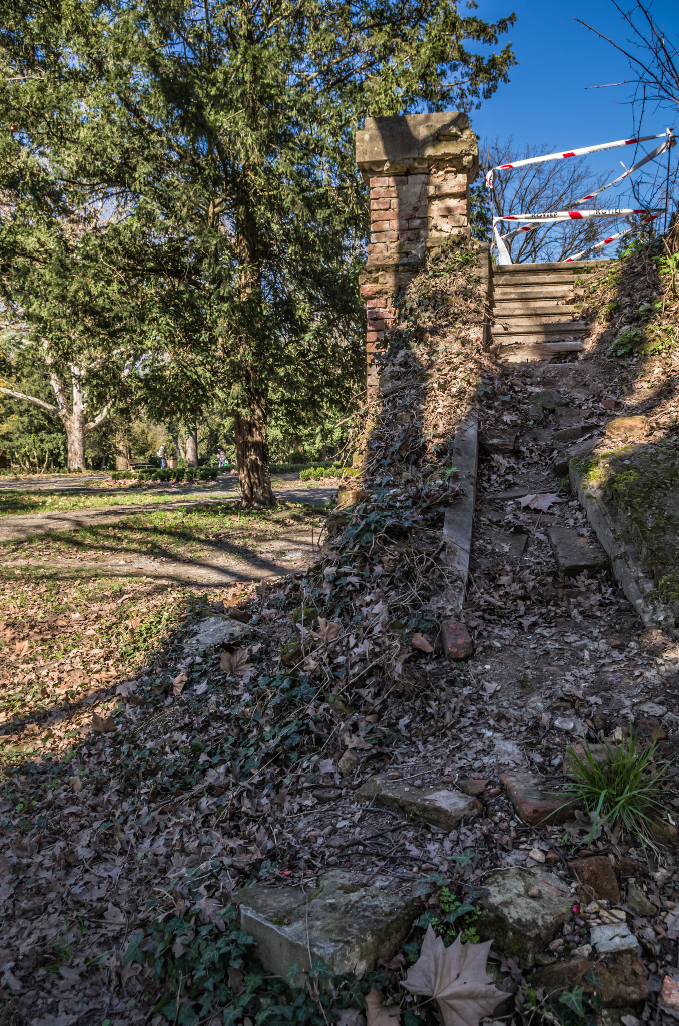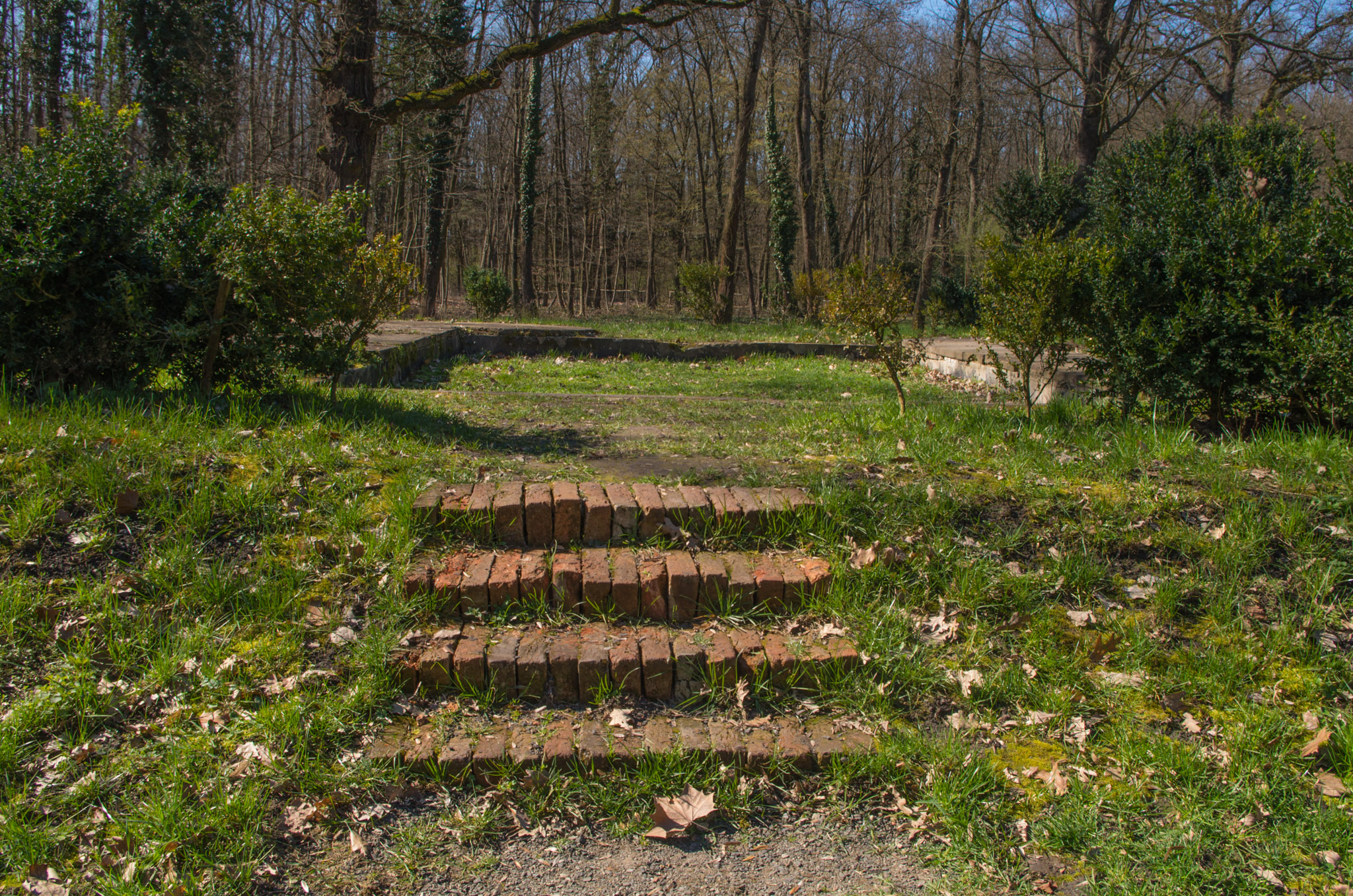"A díszkert középpontjában kör alakú vízmedence közepén posztamensre állított, gazdagon faragott váza kapott helyet. A családi lakó és nappali tereket erre a díszkertre tájolták, s az épület tengelyében, az Antal erdőbe 100 méter széles nyiladékot - kilátót - vágtak kelet felé. A kastélyparkot magas drótkerítéssel övezték, melyen két kaput nyitottak. Az északnyugati a Németnyilas és a Krisztina erdő között húzódó új major épületegyüttese mellett nyílt, másik a parktól délre fekvő Ilona ligeti major épületeihez vezetett."