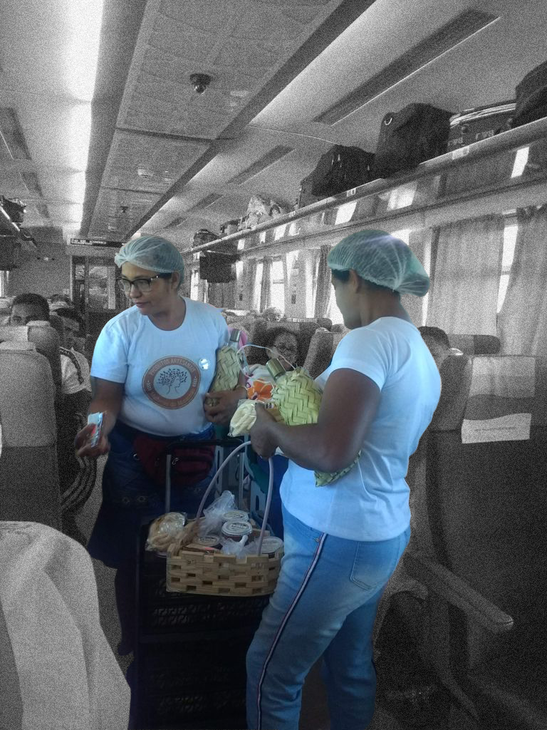 Ao invés da janela, passaram a vender em um vagão do trem montado para que elas e outros 14 grupos que dependiam das vendas na beira da ferrovia pudessem manter suas atividades.