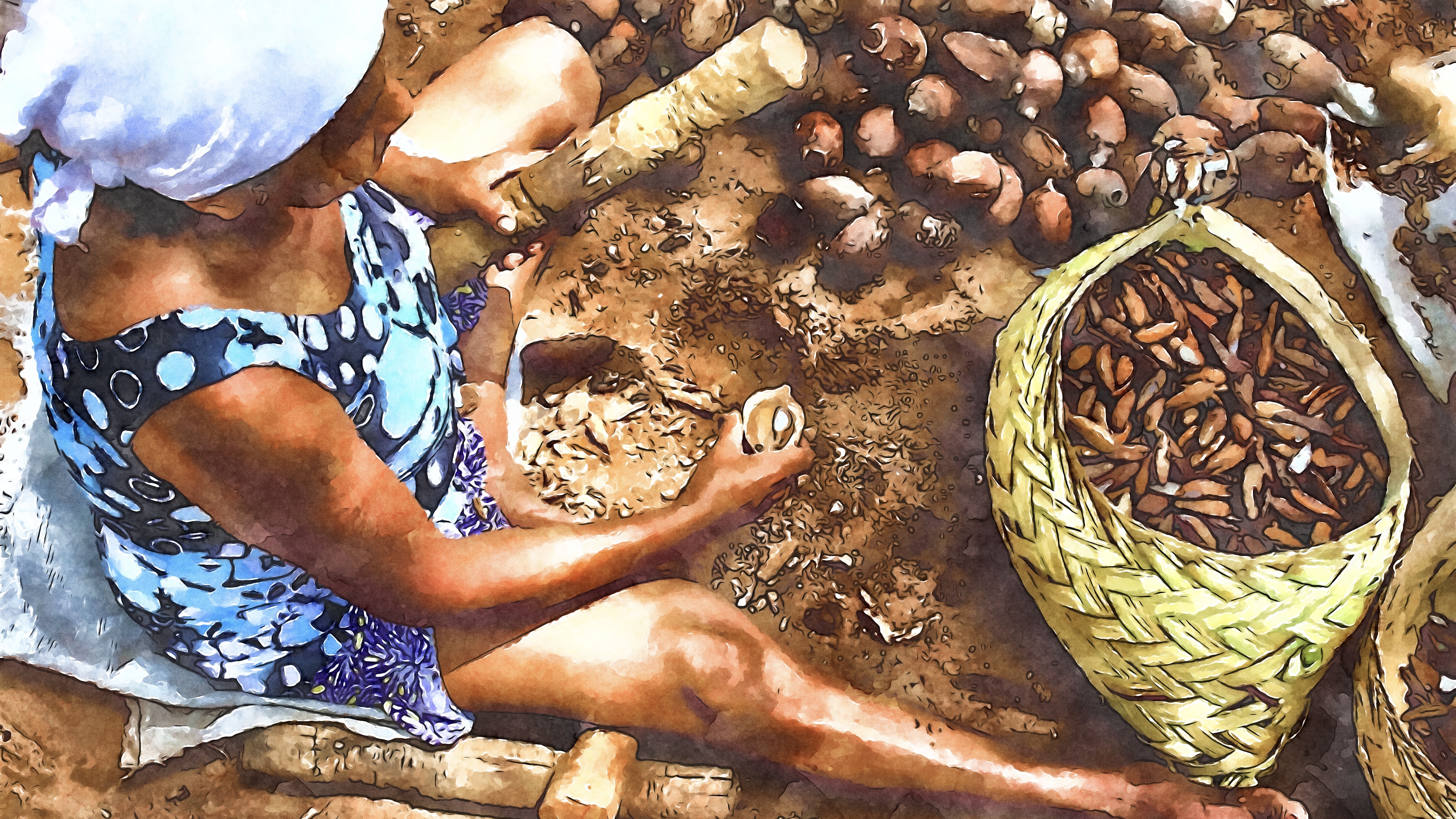 Depois de quebrar o babaçu, as mulheres processam da amêndoa até a casca, sem desperdiçar nada dessa matéria-prima tão especial.