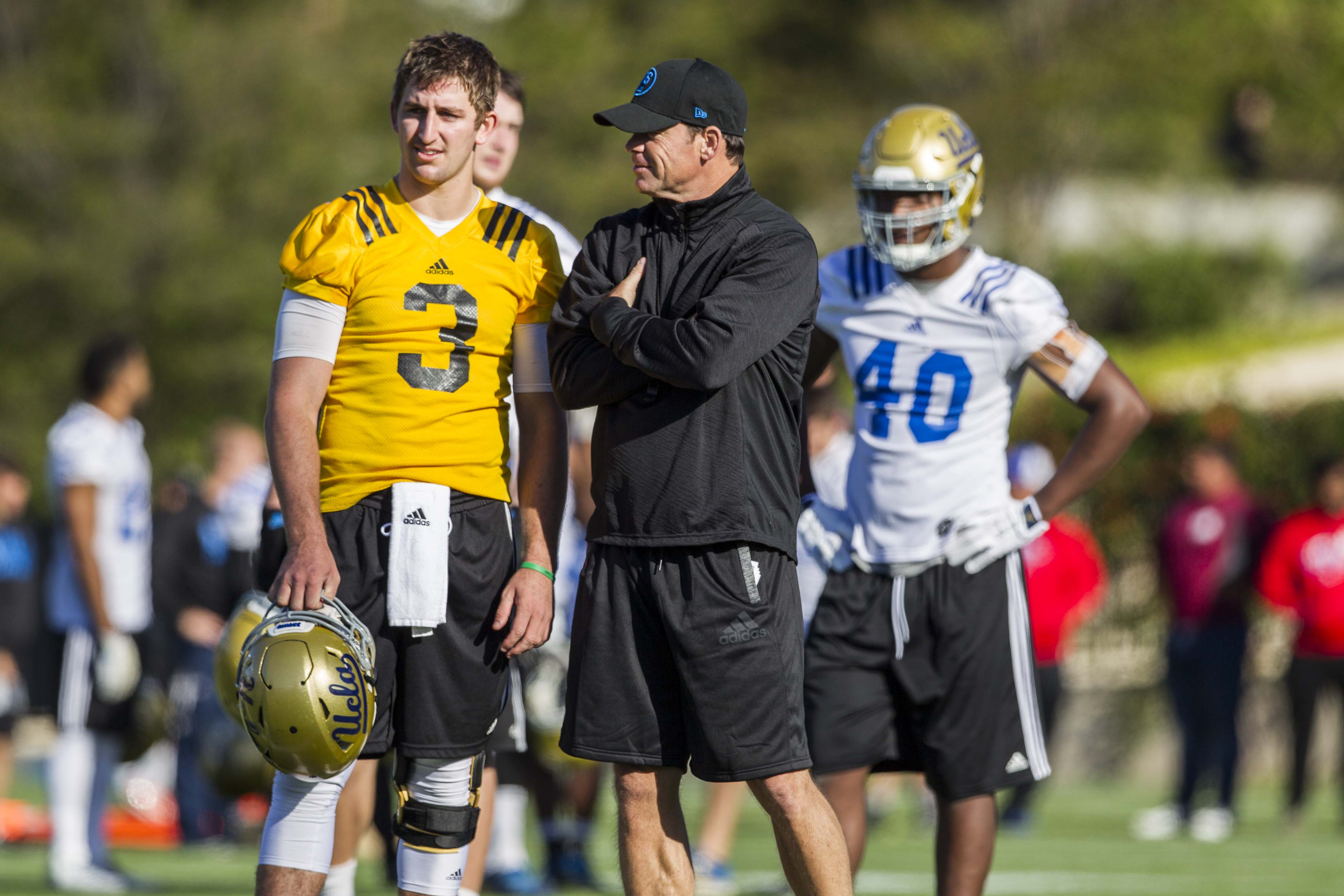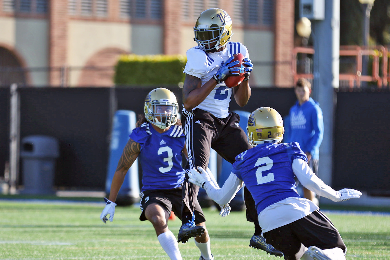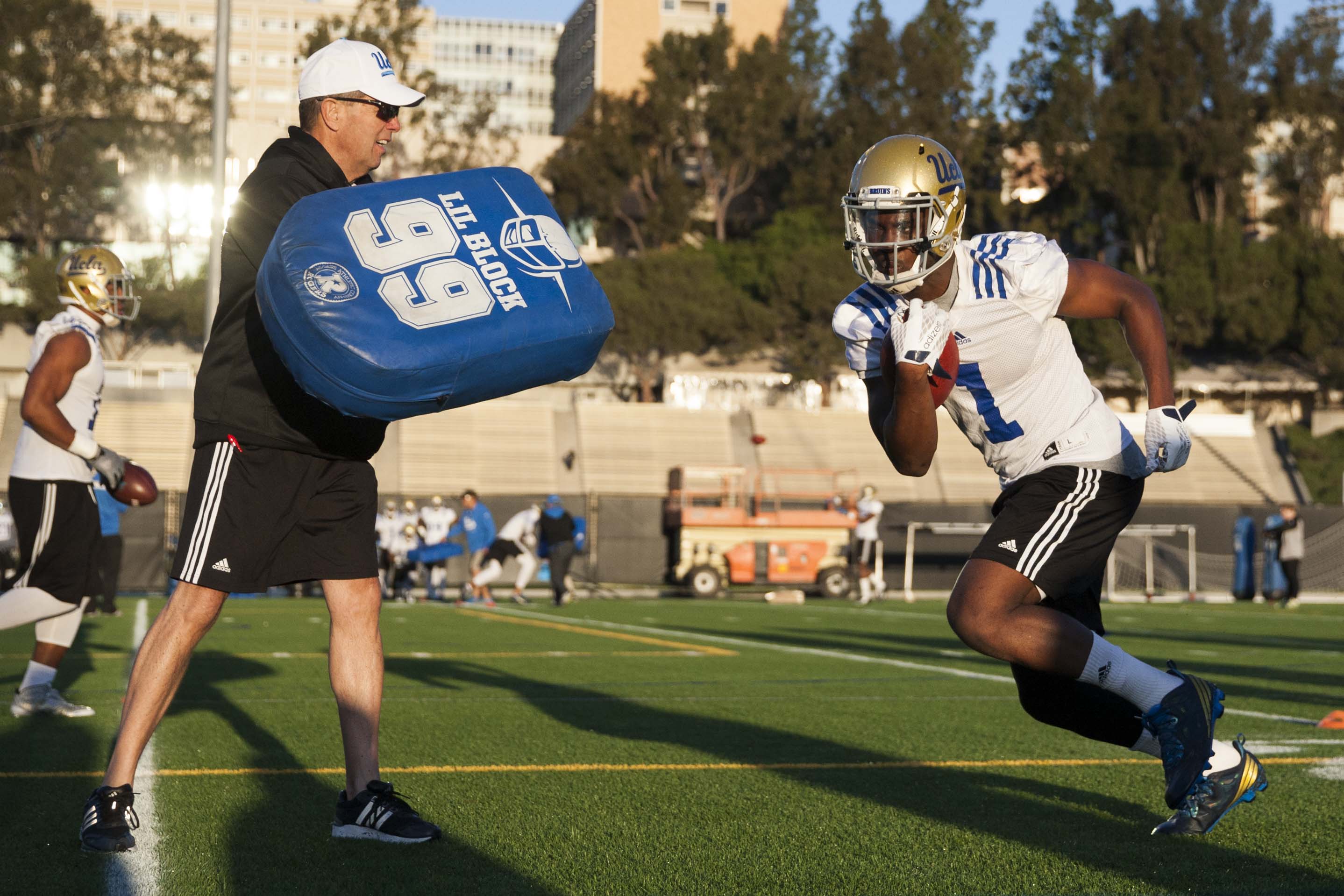 Former Bruins Chris Longo, Ka'imi Fairbairn, Caleb Benenoch, Kai Forbath, Jeff Locke and Kenny Clark take in day one of spring practice.