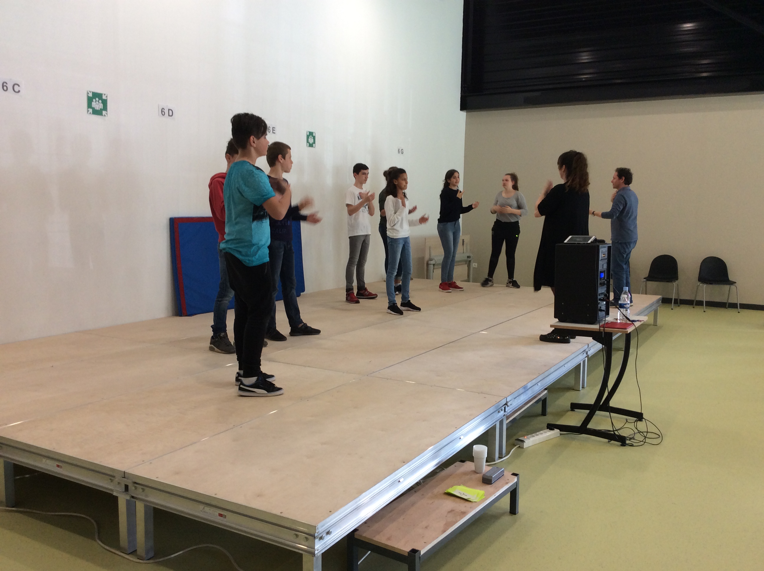 Dans l'atelier mouvement avec Mme Muller, Mme Adam-Ouret et M. Serrier nous avons appris à faire du BodyPercussion. Le BodyPercussion est une pratique dans laquelle on utilise son corps pour faire des sons en rythme avec une musique. Nous utilisons une musique de DUDY, intitulée : Back Home. Nous avons également fait une chorégraphie avec différents pas de danse que Mme Muller nous a enseignés.