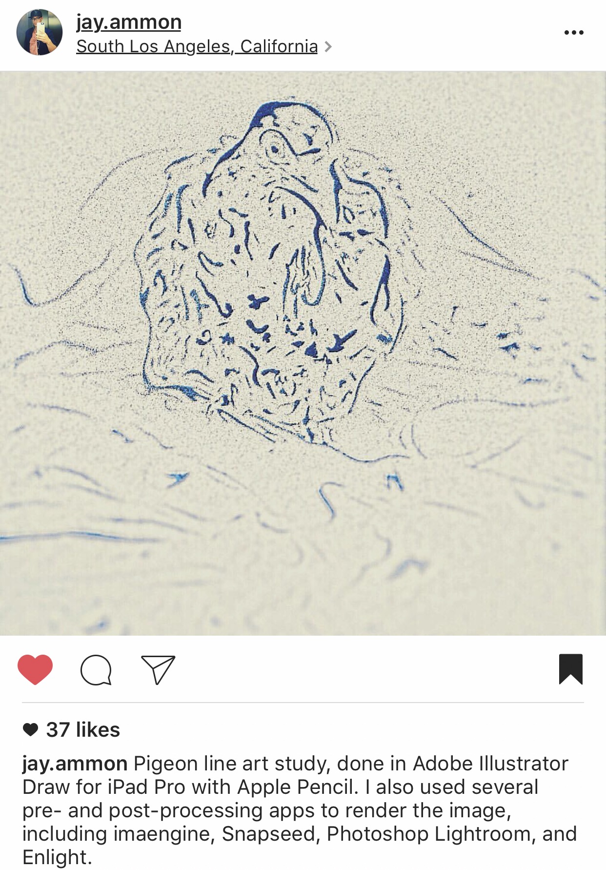 My digital line art pigeon piece on instagram had significantly grown my organic following over the course of the past two weeks, and I received a relatively large amount of likes, in comparison to my standard posts. It's inspirational to know that my efforts in creating digital illustration and photography art on my iPhone 7 Plus and my iPad Pro are not going to waste.