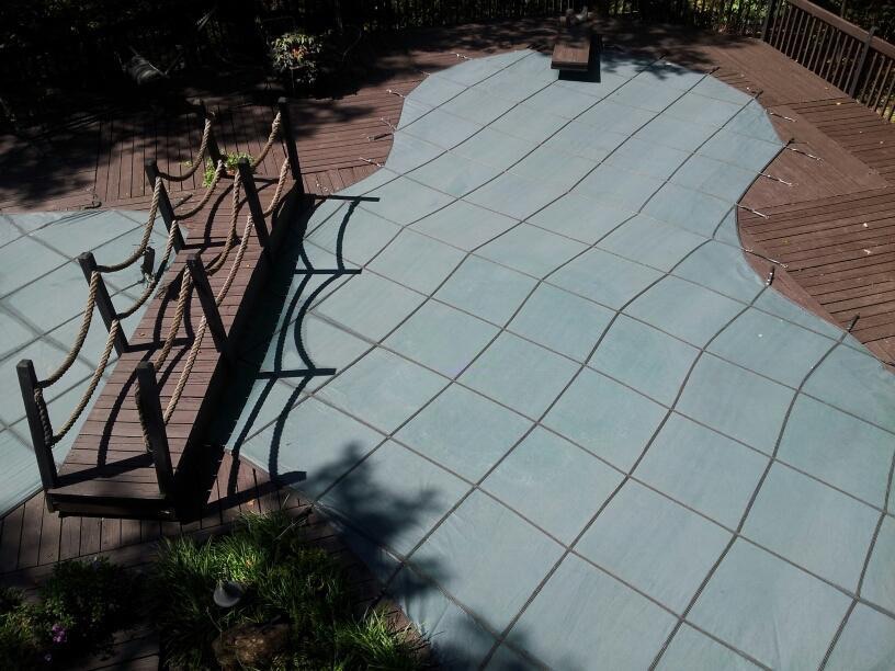 Our Swimming Pool Safety Covers can be custom built to fit any size or shape pool, as well as any pool obstructions.