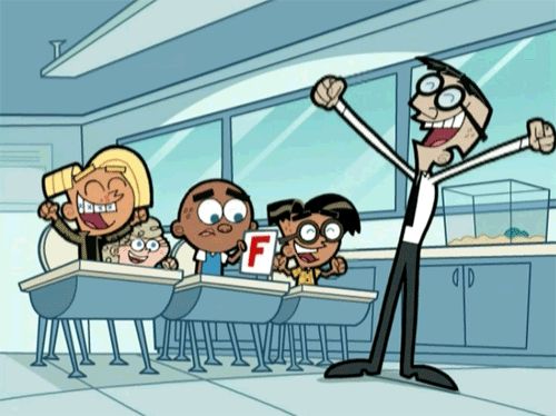 Timmy not only has terrible experiences at home but also at school. His teacher, Mr. Crocker, constantly wants revenge on timmy, gives him f's on all of his tests and chases with a fairy gun with hopes of capturing cosmo and wanda.