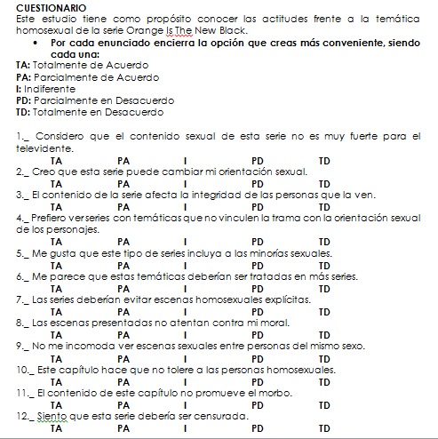 - Identificar el nivel de aceptación de las unidades de análisis hacía la temática homosexual presentada en el capítulo 4 (temporada 2) de la serie Orange Is The New Black.
