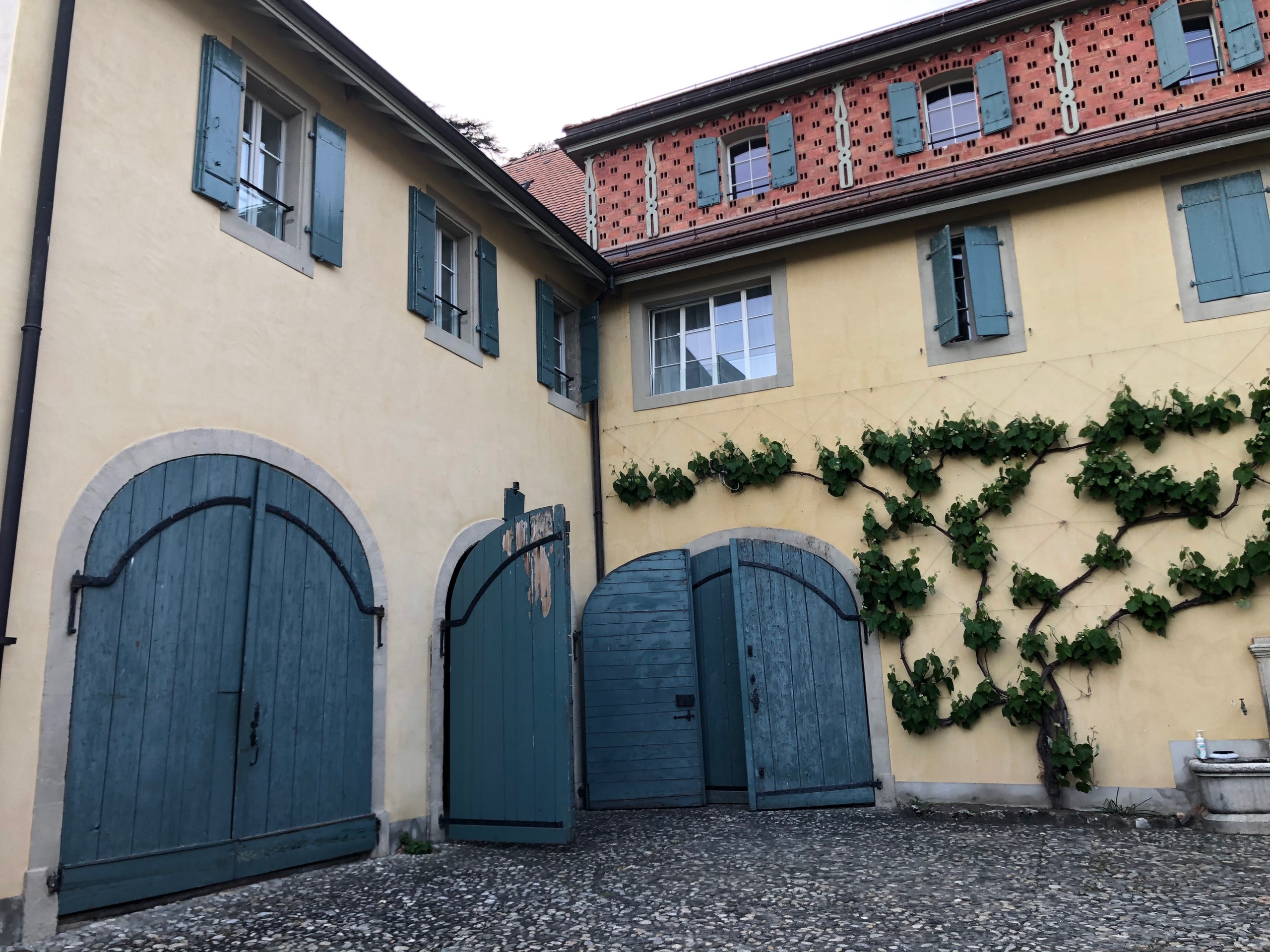 Returning towards Luins through the courtyard of the Chateau de Vinzel. Open for tastings by appointment or on Saturday mornings between 10:30 and 12. Check the website for details.