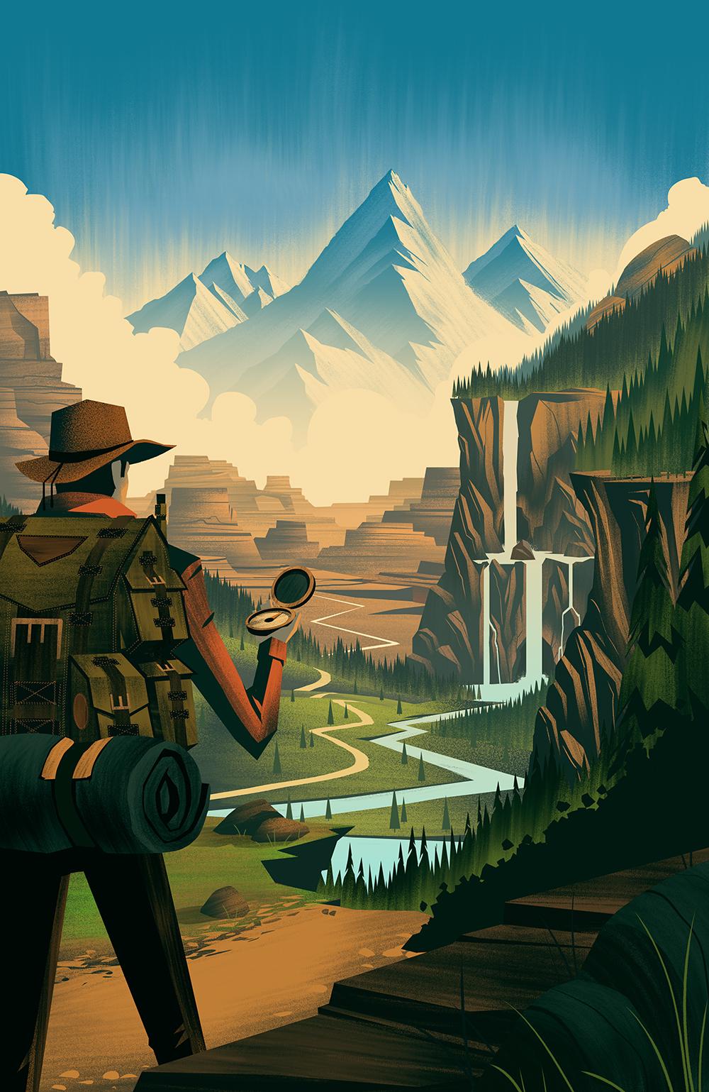 Adventure into a new and brave world is reminiscent of Romantic art. Depicting nature as something to be appreciated and traversed is a theme stemming from the Industrial Revolution.