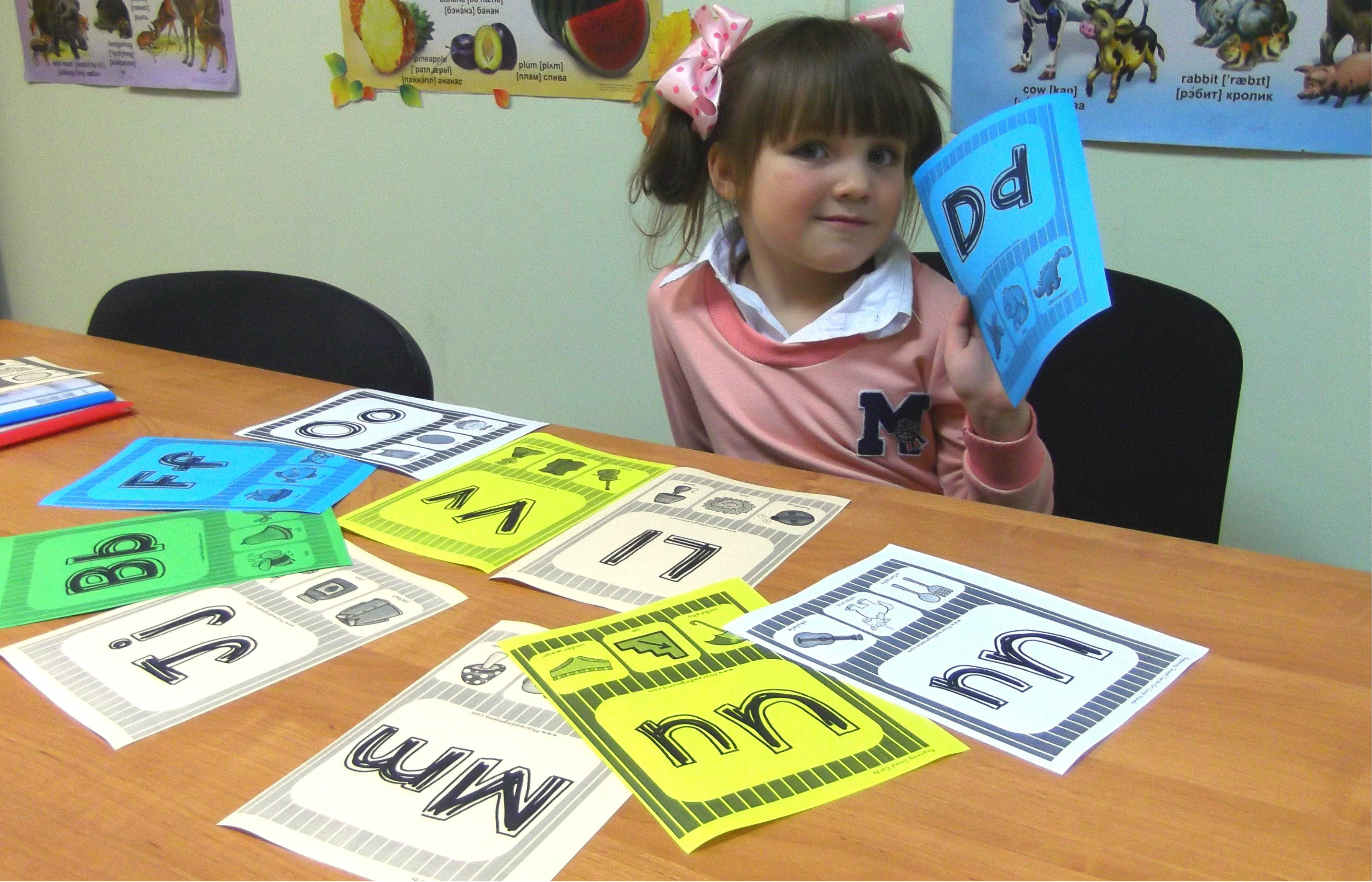 Карточки с названиями букв и картинки с примерами слов, начинающимися на изучаемую букву - веселое и полезное дополнение к каждому уроку.